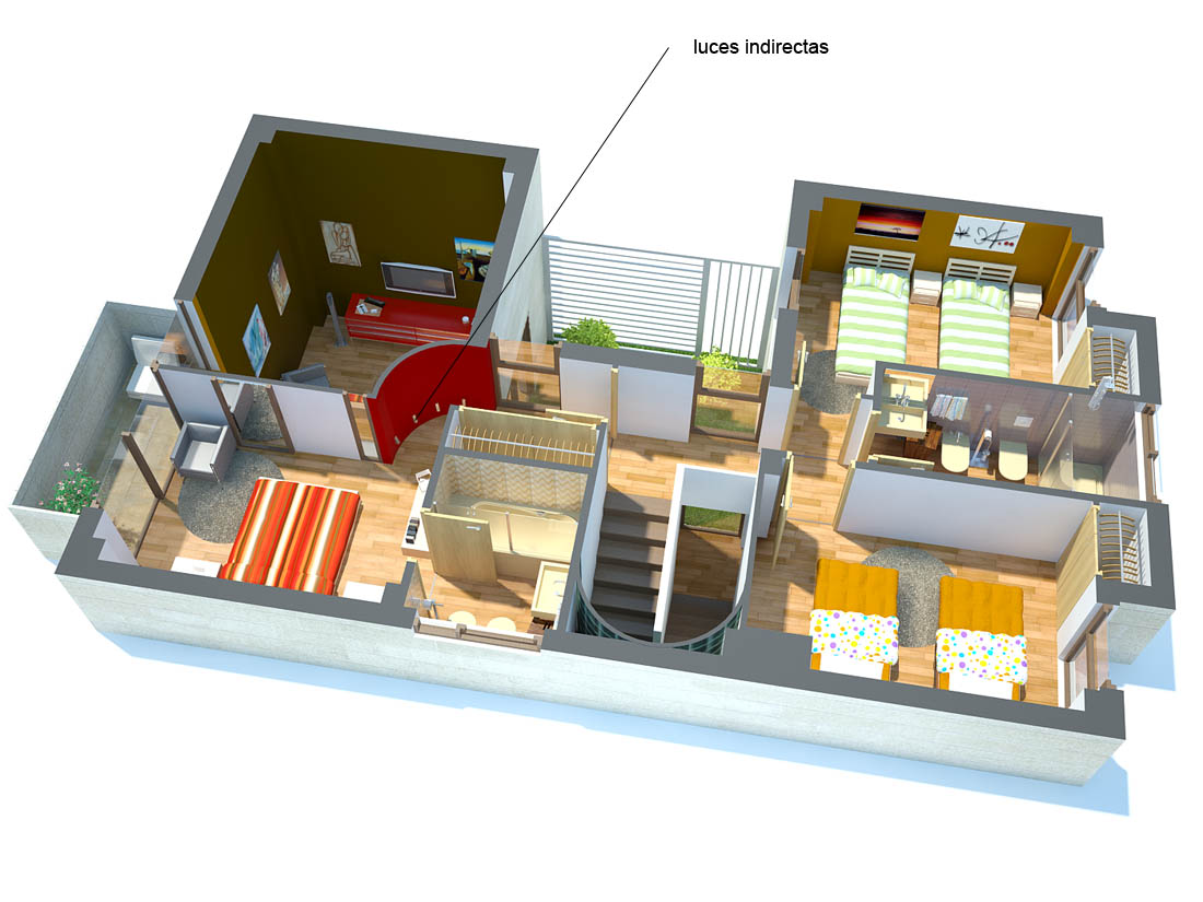 Buenas. Un trabajo que está terminado, en el que he tenido un pequeño problema. Como veis en habitación principal he puesto unas luces indirectas apuntado al suelo, son Vray light y no proyectan luz ni por las buenas ni por las malas. He probado con todas las luces de max y nada, no soy capaza de hacer un cono de luz. Supongo que tiene mucho que ver con haber iluminado la escena mediante LightWave. ¿sabéis cómo resolverlo?