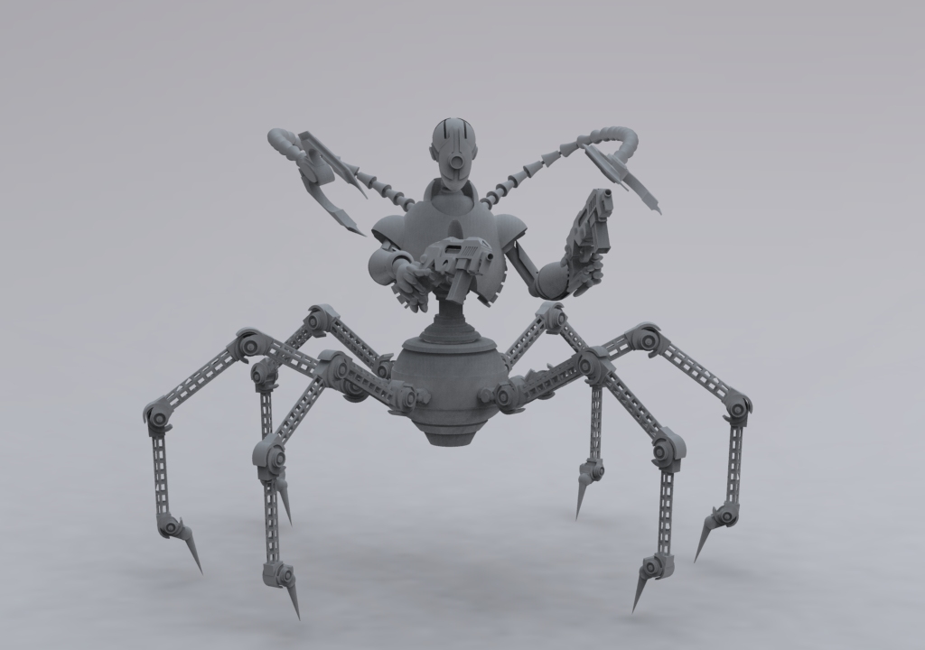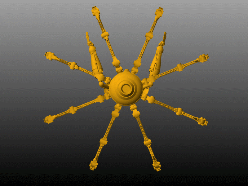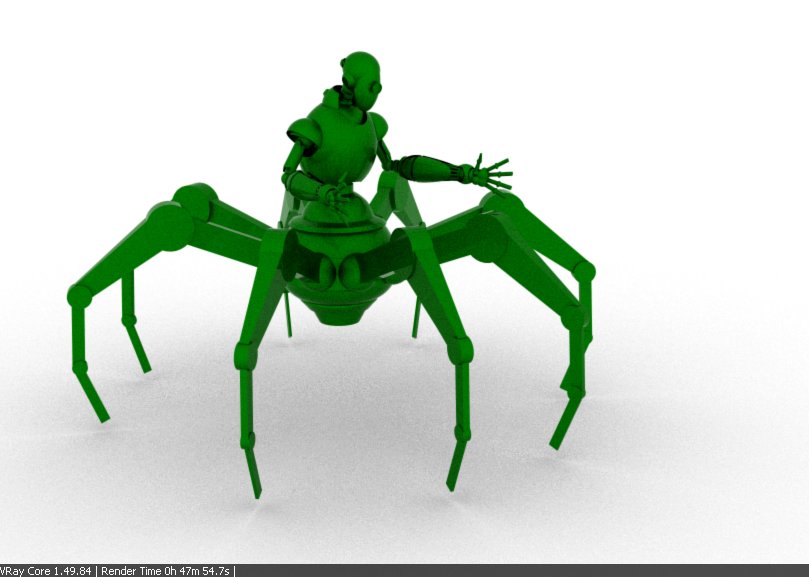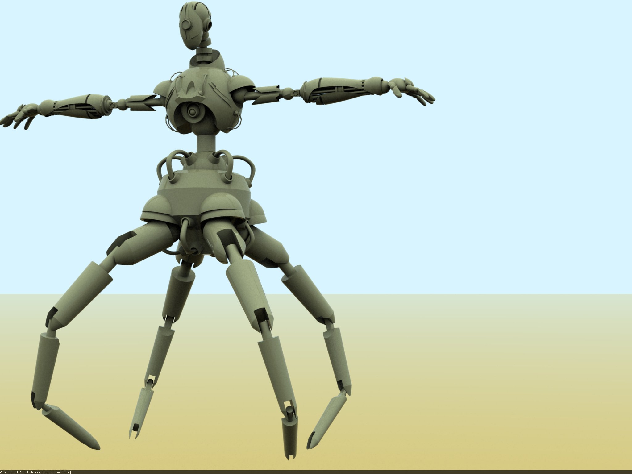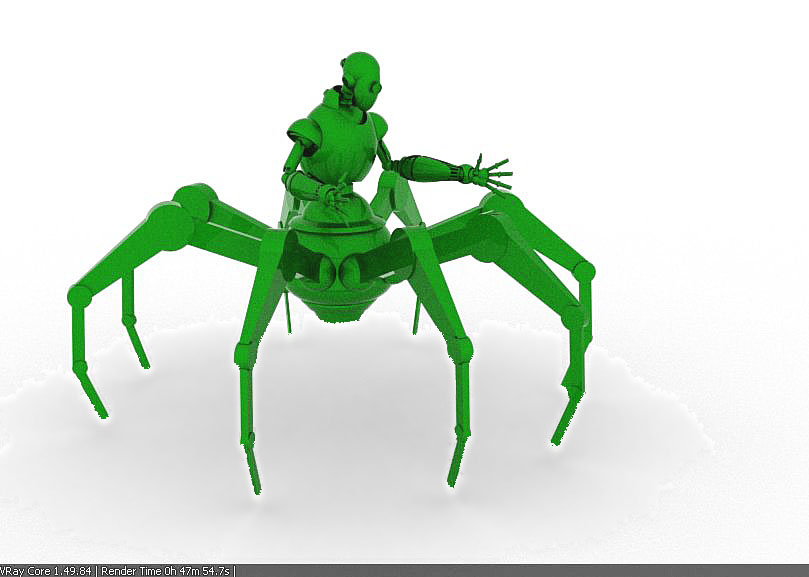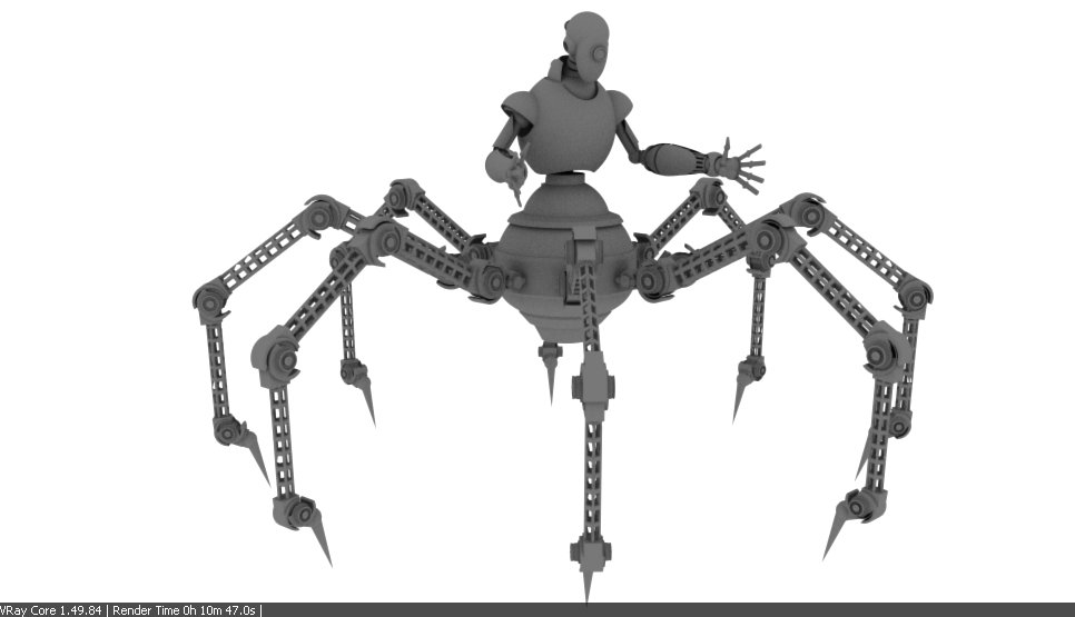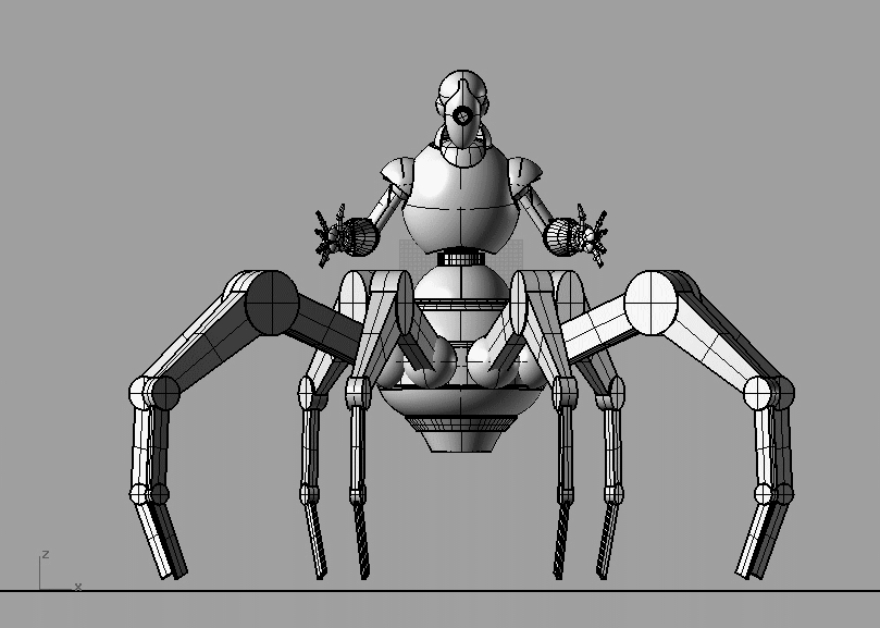 Te hago una sugerencia, move un poco la posición de las patas y los brazos que salen desde atrás con las pinzas, que no quede todo tan simétrico.