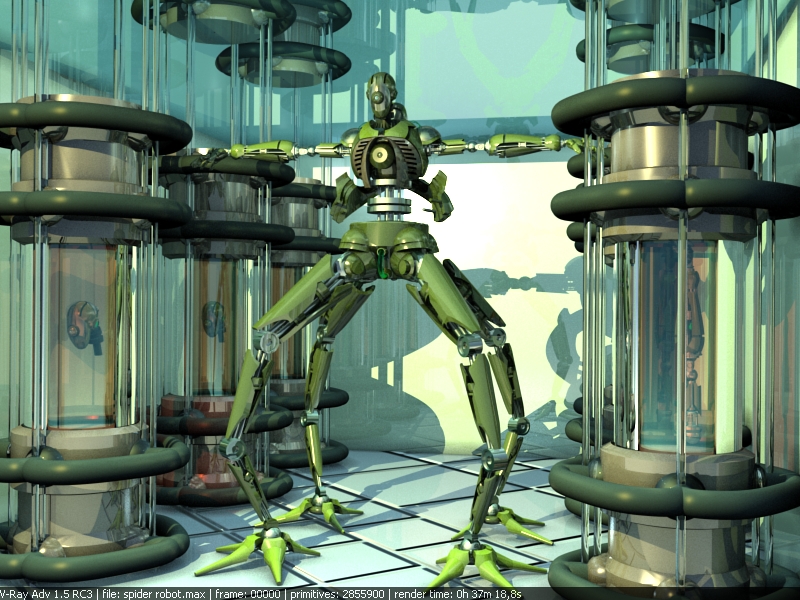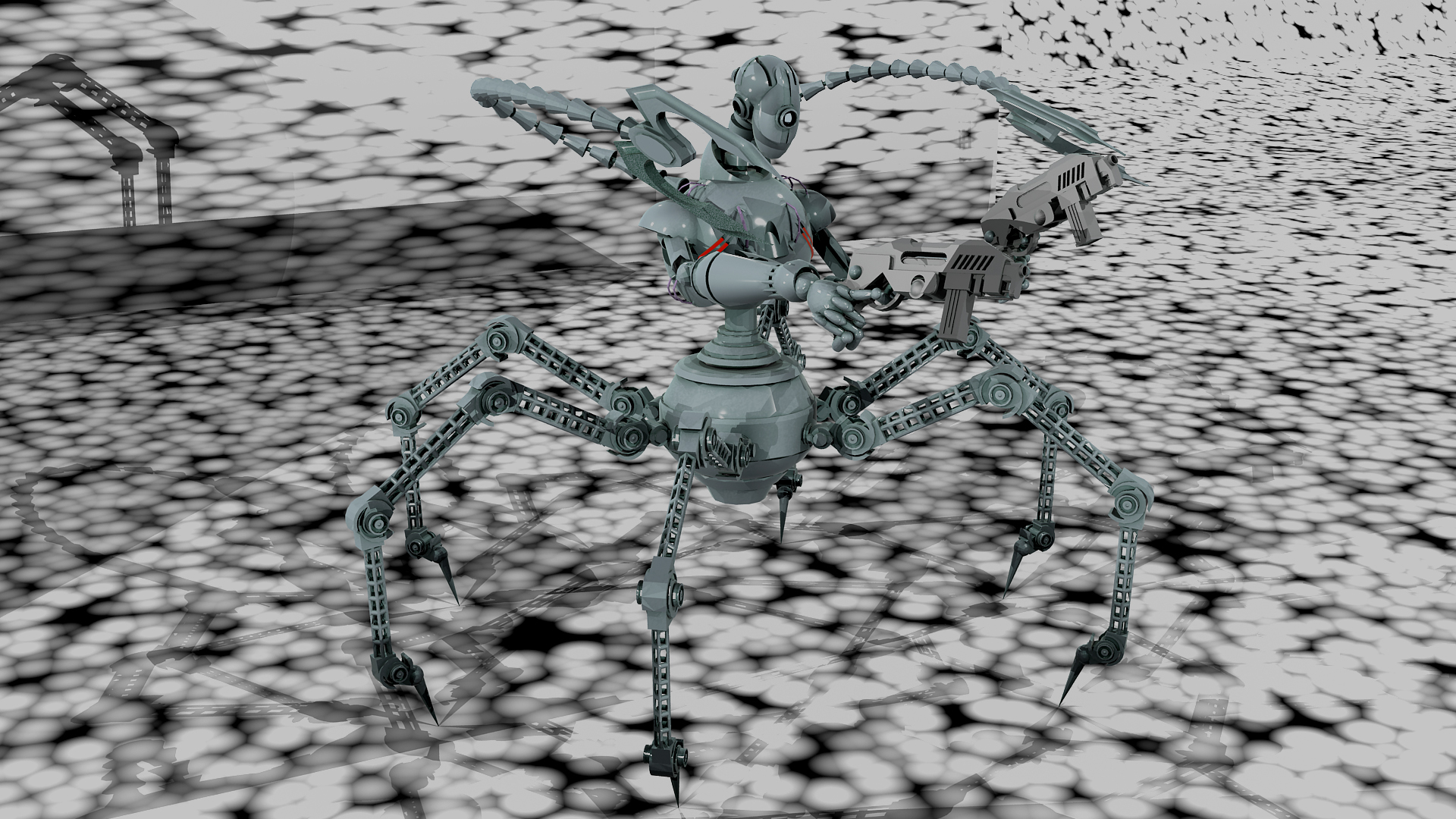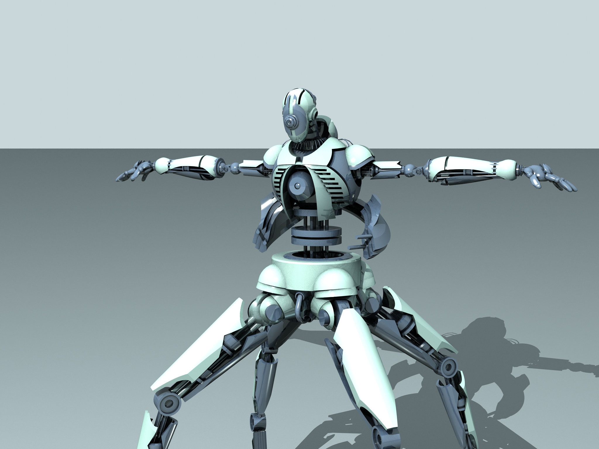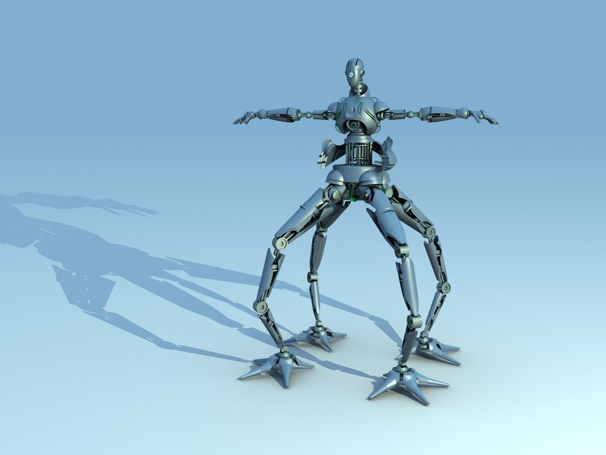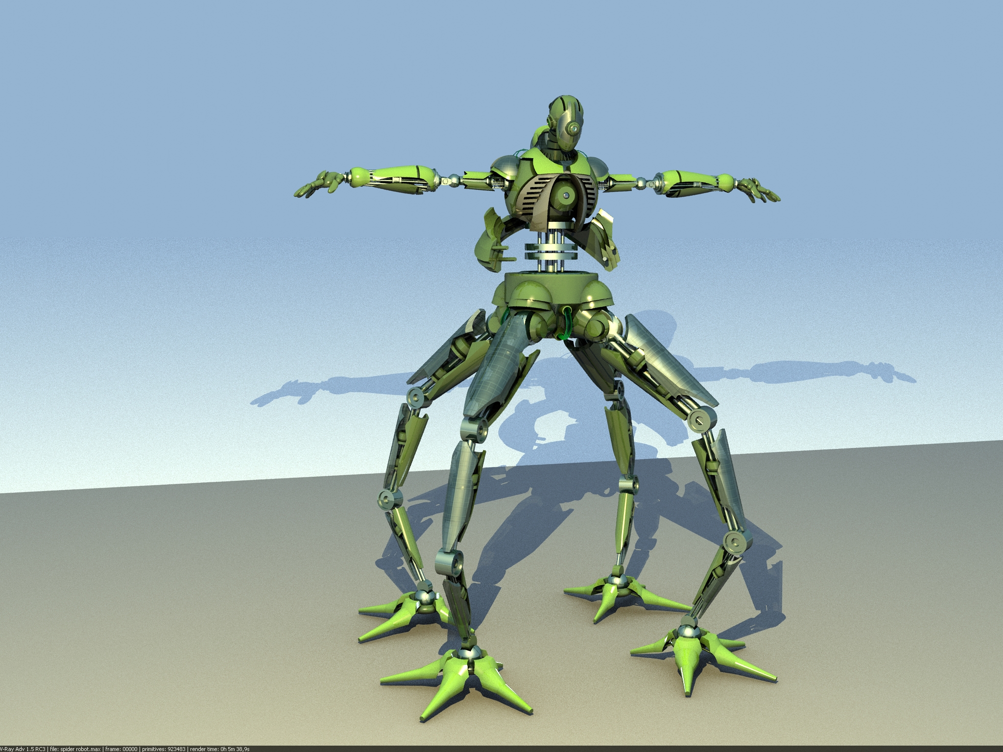 Te hago una sugerencia, move un poco la posición de las patas y los brazos que salen desde atrás con las pinzas, que no quede todo tan simétrico.