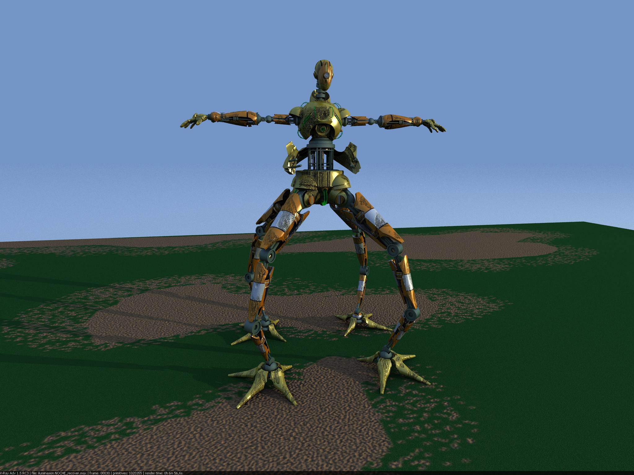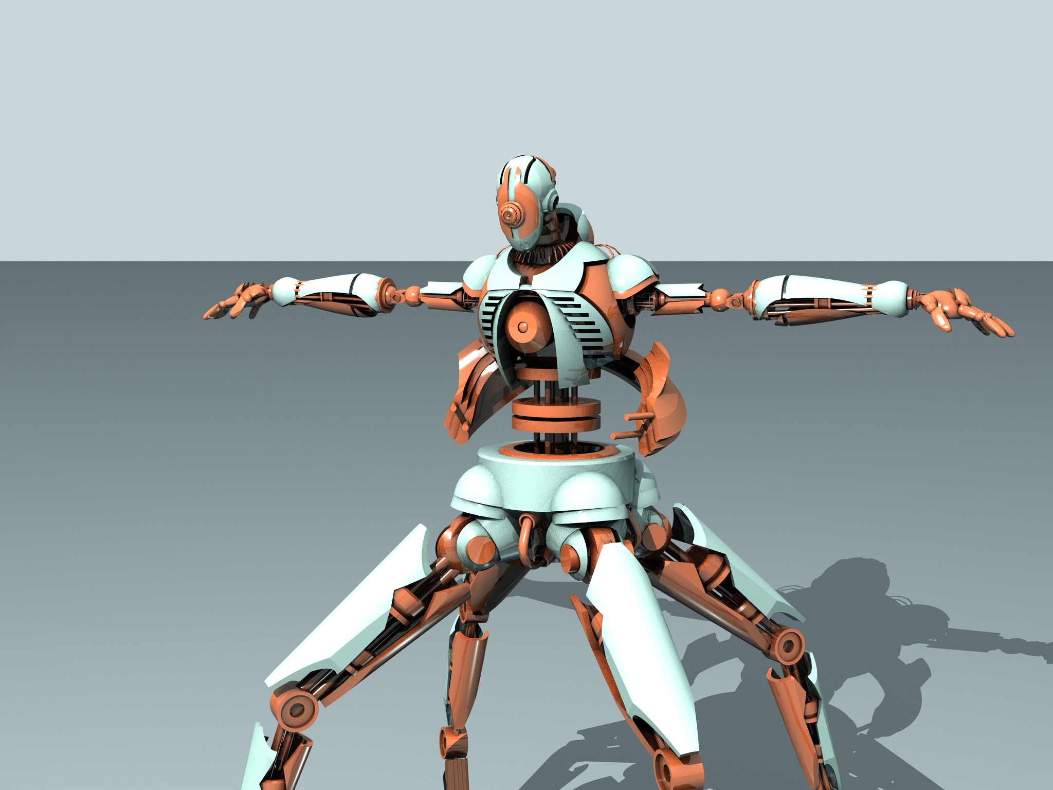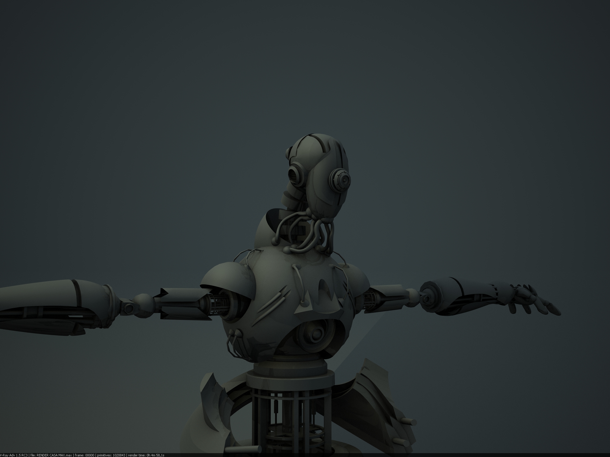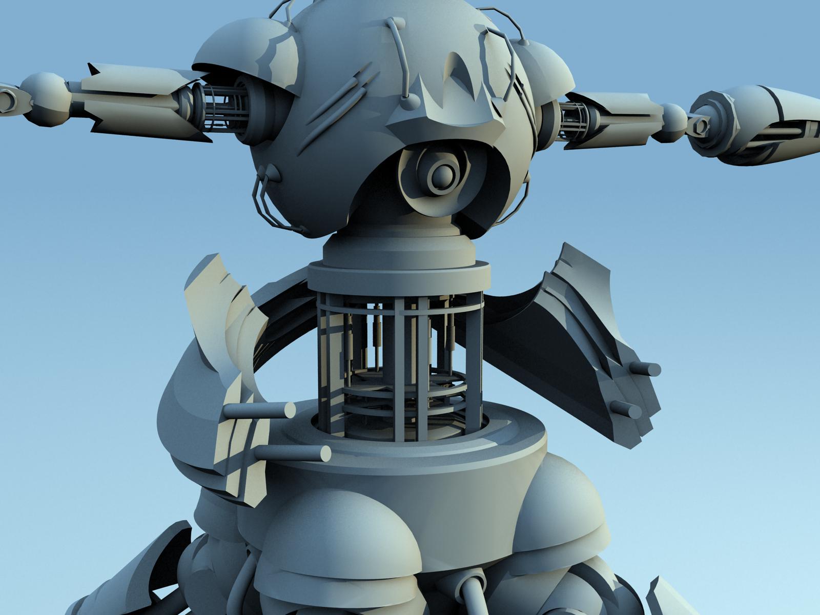 Muy chulo el robot. Lo único que te puedo decir que veo yo raro son las manos, demasiado redondeadas en comparación por ejemplo, con la estructura de las piernas, tienen bordes más rectos.