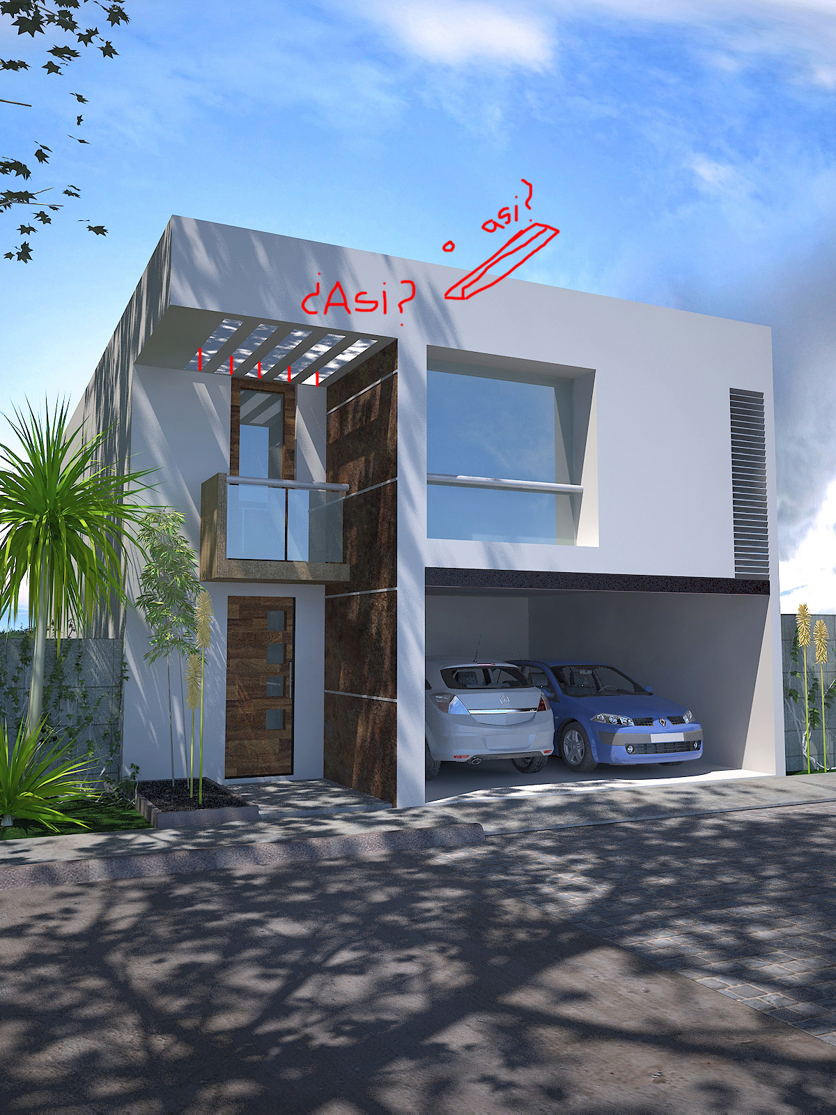Hola Jack, realmente aprecio mucho tus comentarios, mira `pasa lo siguiente, entiendo perfecto lo que me cuentas de la cochera, pero el terreno es tan opequeño que no me queda más que hacerlo así, mide 8 de frente por 15 de fondo, en esos espacios no me puedo dar el lujo de hacer lo que sugieres, totalmente de acuerdo contigo, me gustaría incorporar el espacio de la cochera con el contiguo que es una cocina, si me das tu MSN podre pasarte el proyectoe n CAD y lo comentamos igual y se puede hacer algo mejor por ahí ¿no? Respecto a las pérgolas (así le llamamos en México), sí, se ve raro, pero así salió la imagen tal vez el color blanco de las pérgolas hace que no se vea el volumen, pero, si tiene volumen, gracias de nuevo por tus comentarios, de dónde eres? Mi MSN es, ajuareg63@hotmail.com.