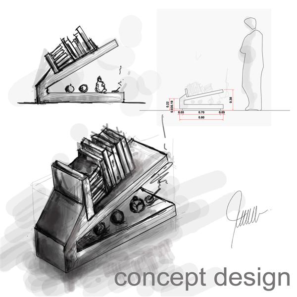 Bonito trabajo algo que agregar a lo que han dicho el render del mueble de los libros me parecen en sentido equivocado las betas de la madera, deberían ser paralelas a la forma inclinada, muy bonitos bosquejos cuánto valen esas tablet? Quiero una joj.