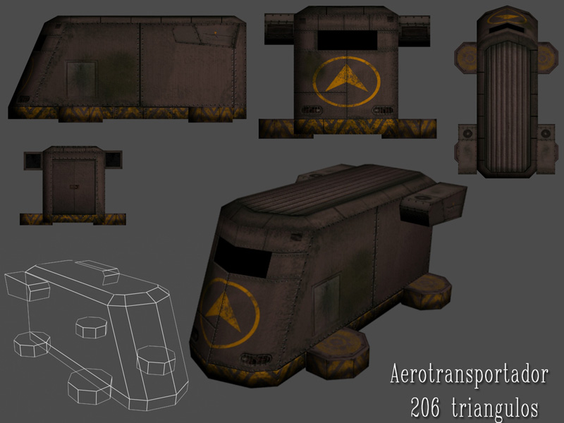 Hola. Os dejo aquí un modelo que he hecho como atrezo de un videojuego de naves. No sería una nave pilotable. Simplemente circularia o estaría aparcada en alguna parte del escenario para ambientar la fase.