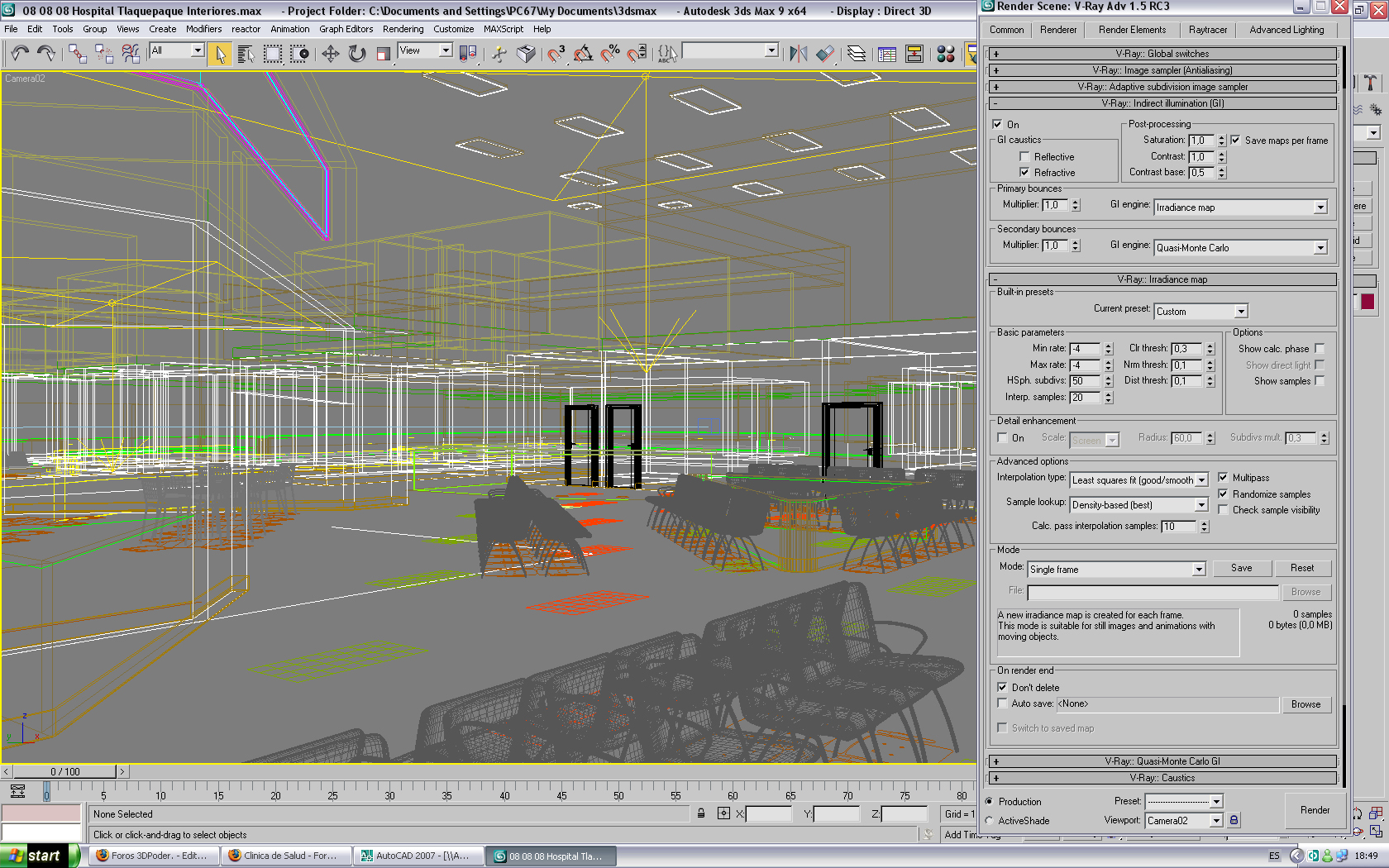 Tengo problemas con el interior, aparece mucho ruido en los muros blancos, si alguien tiene alguna idea, estoy manejando Vray, 3ds Max 9 y el modelado desde AutoCAD.
