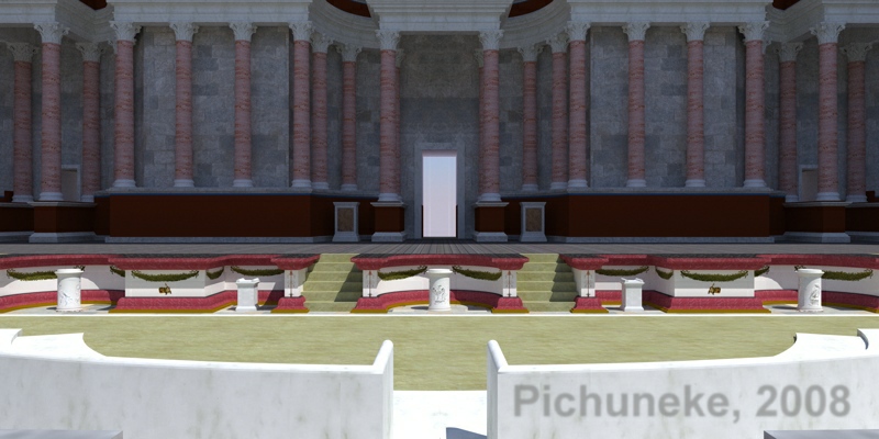 Y en cuanto al foro: la gente no sabe lo que te llena de satisfacción eso de buscar información, e irla encajando como las piezas de un puzle. Es una mezcla de investigar y bucear en textos y modelar intentando que todo encaje detectivesca. Y además aprendes mucho en el proceso, no solo de 3d sino de cultura general. La idea que tiene la gente de un teatro romano es muy distinta a lo que era realmente, un conjunto de ceremonias de propaganda política y culto al emperador que duraba todo el día y tenía como objeto hacer propaganda del modo de vida romano.