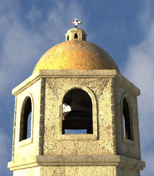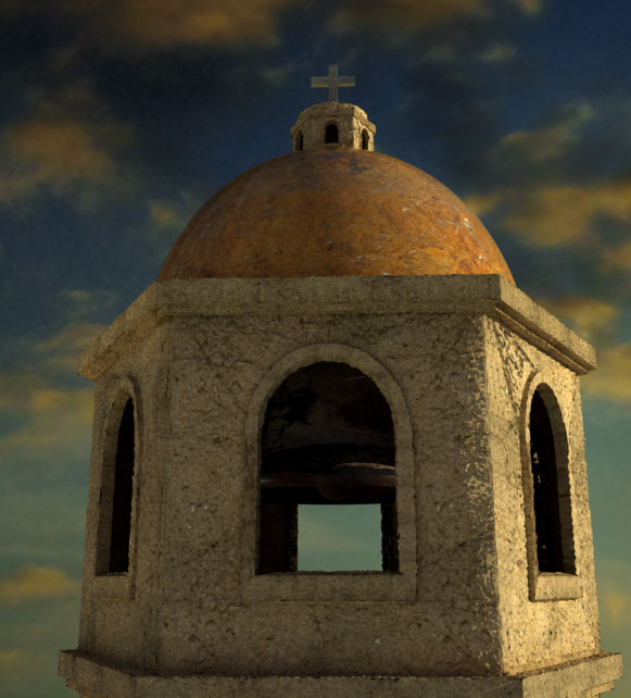 Si te vas a centrar sólo en la cúpula, el campanario o lo que sea, podrías trabajar un poco más en la composición y dar más importancia a lo que quieres mostrar. Por ejemplo, podrías aumentar el Lens de la cámara y jugar con el aspecto aplanado del objeto. Suerte.