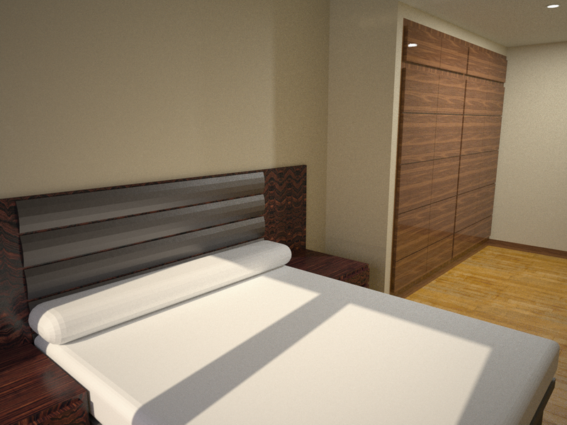 Qué quieres, el dormitorio va a ser así y los muebles son esos (bueno miento, el chapado de la madera es aún peor) me los pasaron en un catálogo del corte inglés.