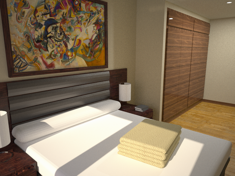 Lo hemos intentado, pero creedme: no ha habido tu tía hasta que le metí la explosión de color del cuadro. Me comentan que el maxwell alcanza realismo a base de hacer interactuar la luz entre unos objetos y otros, la verdad, no me parece la forma más adecuada de conseguir realismo en una imagen la de incluir un Kandinsky de 2x1m.