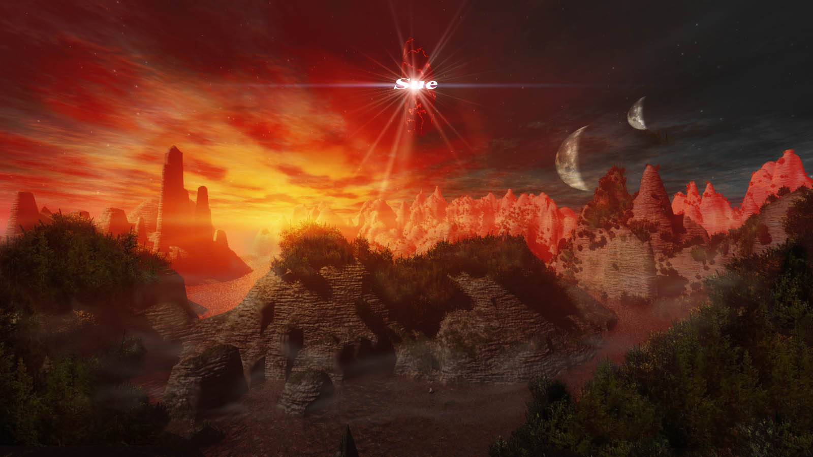 A mí me gusta, muy de paisaje de literatura fantástica con sus dos lunas y eso, lo único que no me mola mucho es la piedra flotante en el que está tu nombre brillando cual estrella polar, eso lo quitaba, pero el resto me gusta, aunque no tengo ni idea de la técnica que dices que has utilizado.