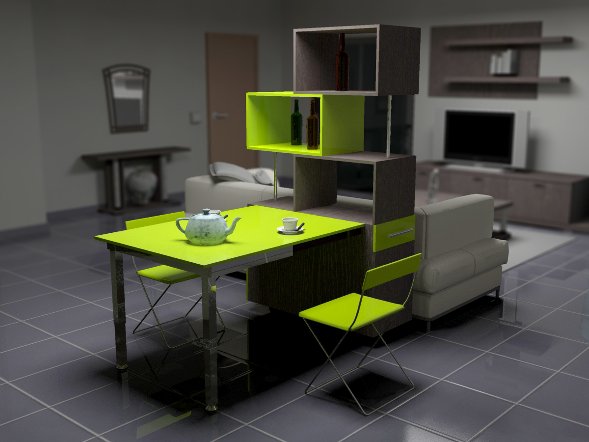 Por el entorno del ambiente no te preocupes, son modelos bajados de un banco libre de modelos 3d para recrear una habitación y no dejar el mueble al aire, por eso he forzado tanto la profundidad de campo, para que se vean, pero nada más, lo modelos tienen un porrón de fallos, es la gracia de que sean gratis.