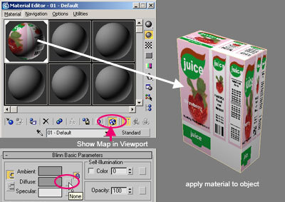 4. Se abrirá una ventana, seleccionamos browse from mtl editor. Finalmente elija el bitmap juice.jpg.