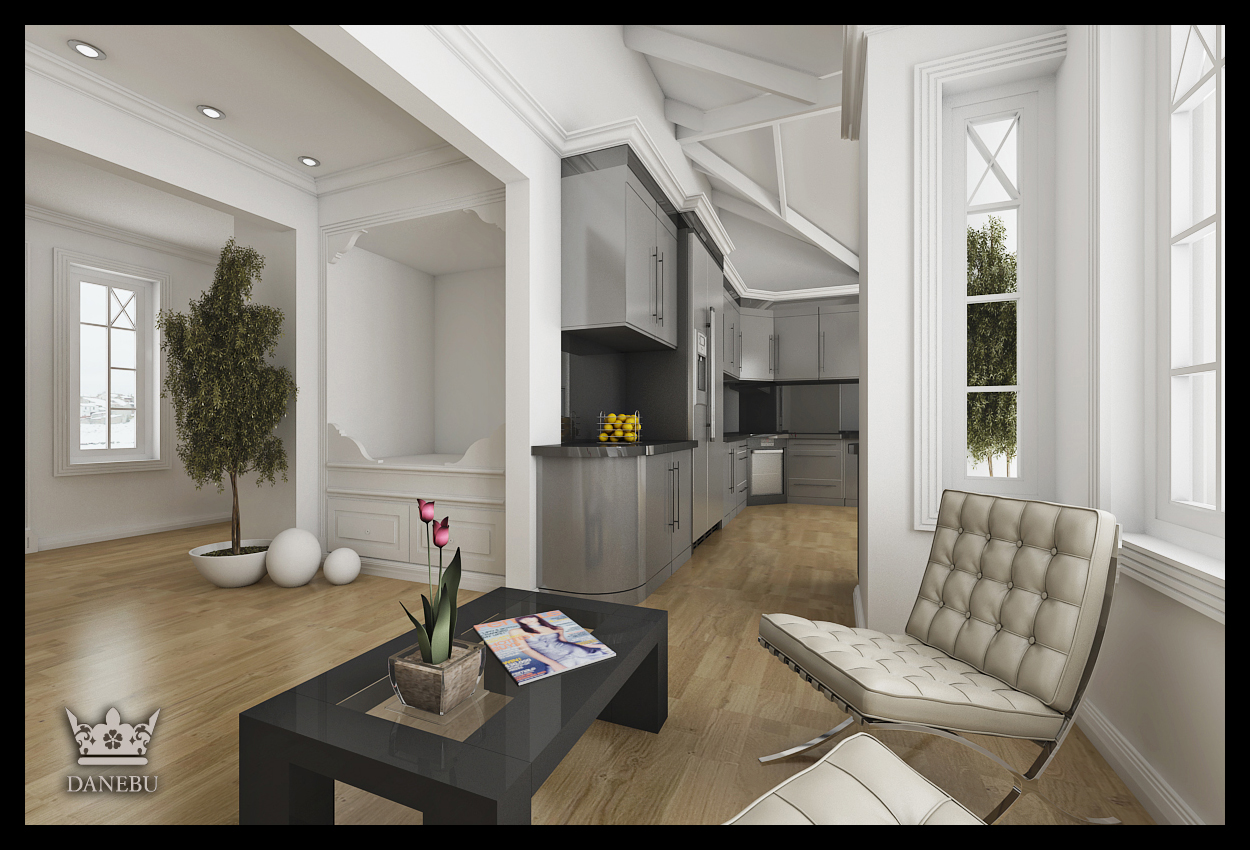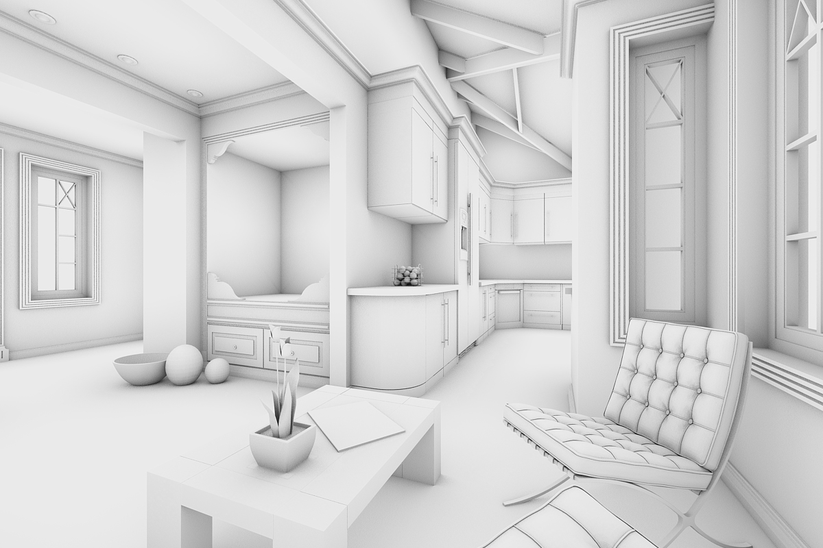 Hola Miguel, un trabajo bueno tío, la iluminación esta super conseguida, el modelado tiene un trabajo muy bueno y muy detallista, yo no sé si tendría paciencia para hacer tantas molduritas y todo eso, pero hay algunas cosas que se ven por ahí, por ejemplo, en la zona de la cocina, en el techo dónde están las vigas hay algunas que se ve luz entre la viga y el techo, imagino que es porque la geometría no llega a ellas, también la revista se ve rara, como quemada, y la tierra del macetero no llega a distinguirse y en la ventana de la izquierda, creo que, si no está abierta te falta la palillera de una hoja.