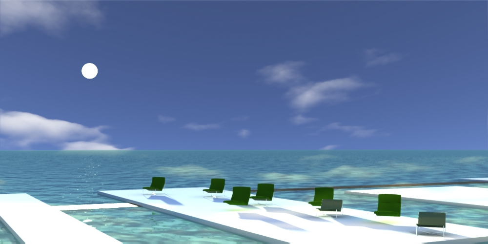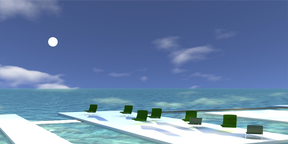 Poniendo una textura de océano que a mí me parece bastante real, se torna tan transparente que me muestra el fondo (background), probé así probé haciendo debajo del mar una placa totalmente opaca color celeste o el que sea y el resultado es exactamente lo mismo.