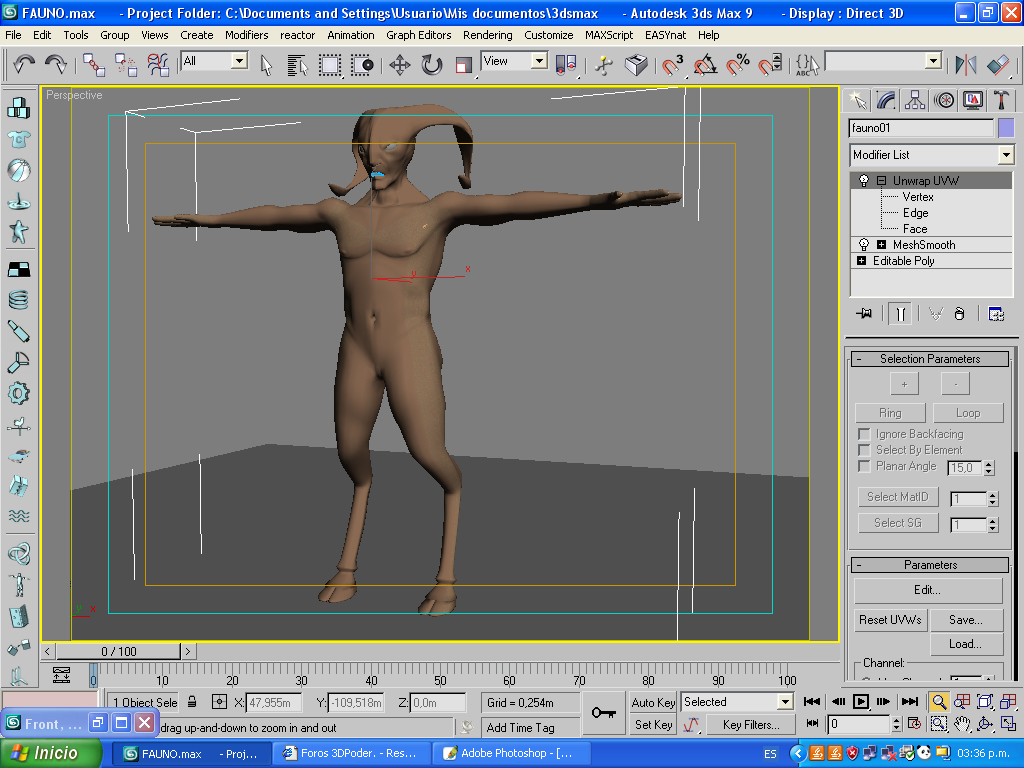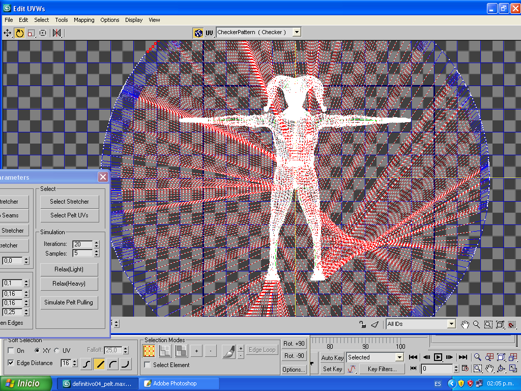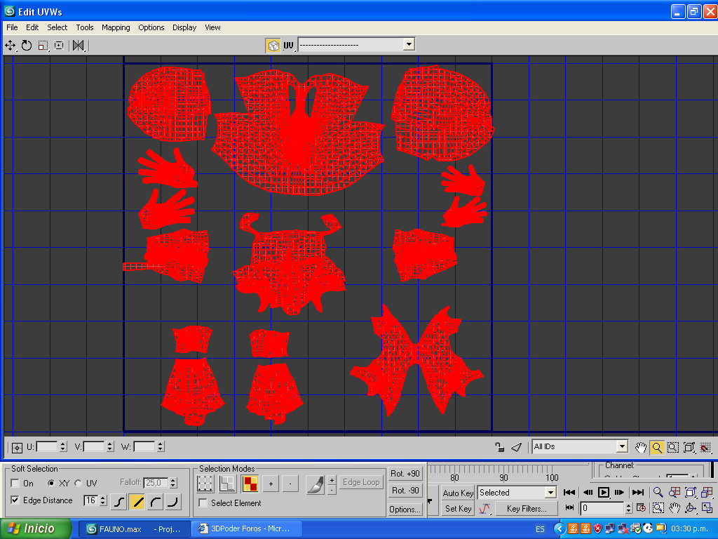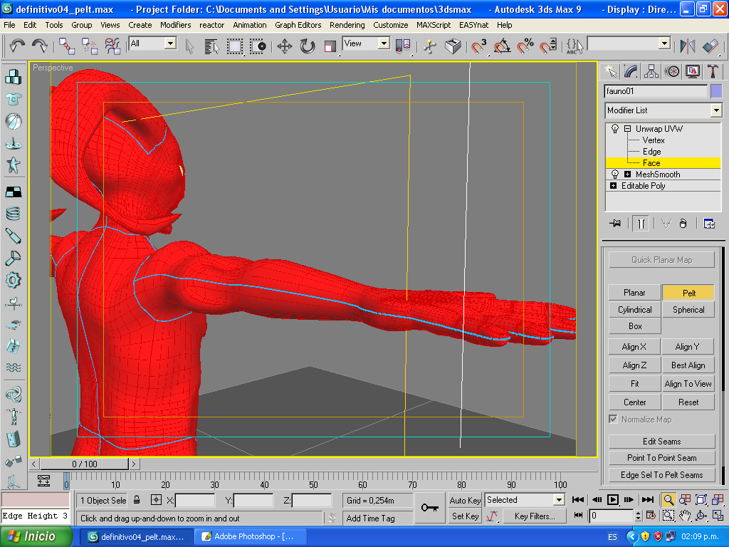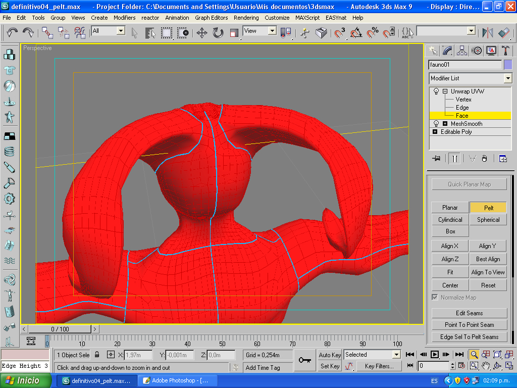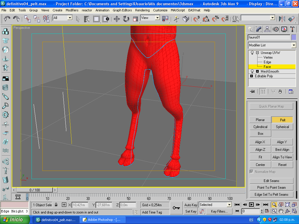 Yo no le hago las costuras esas, de hecho, no tengo muy claro para qué sirven. He intentado ir haciéndolas, pero no parece tener efecto, tengo que seleccionar igualmente los polys que quiero desplegar. Voy seleccionando polígonos, dándole a Pelt y las costuras se hacen solas.