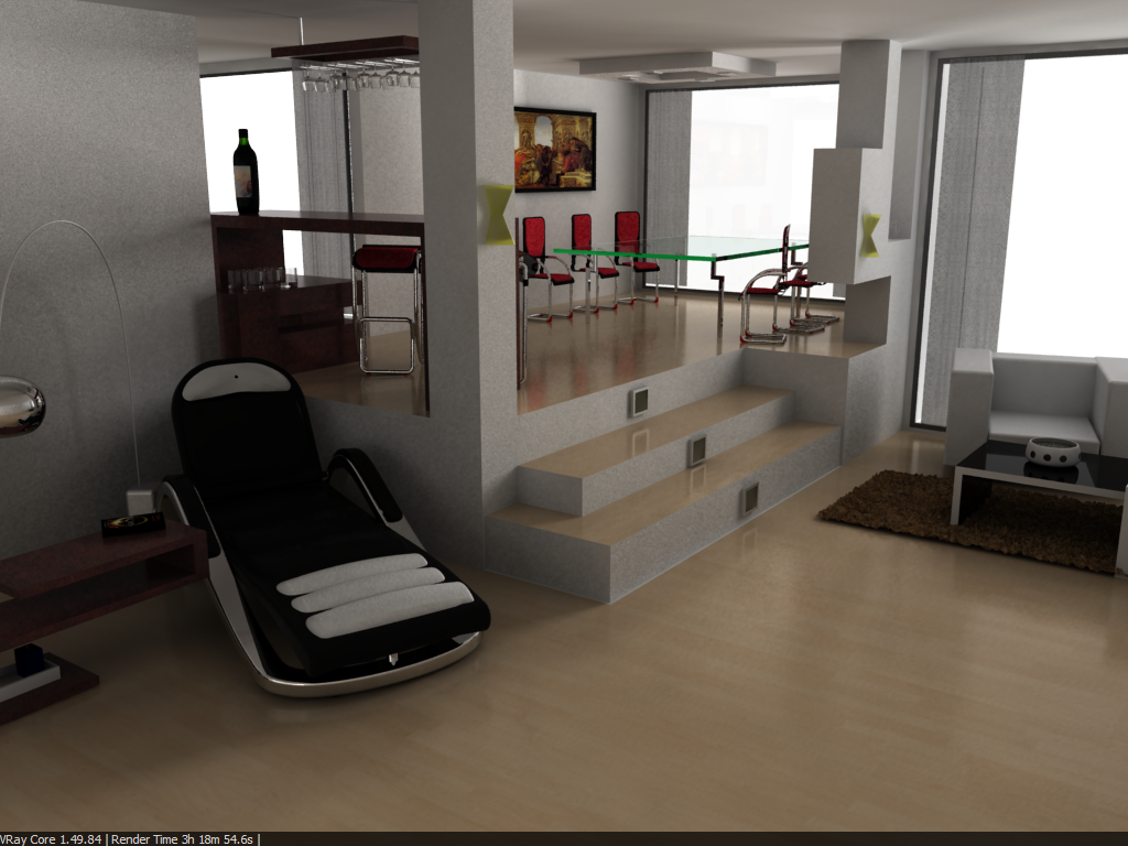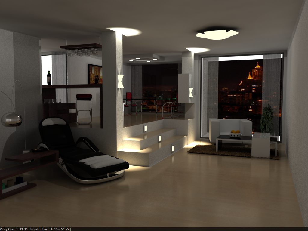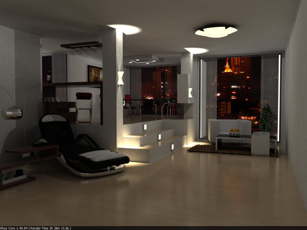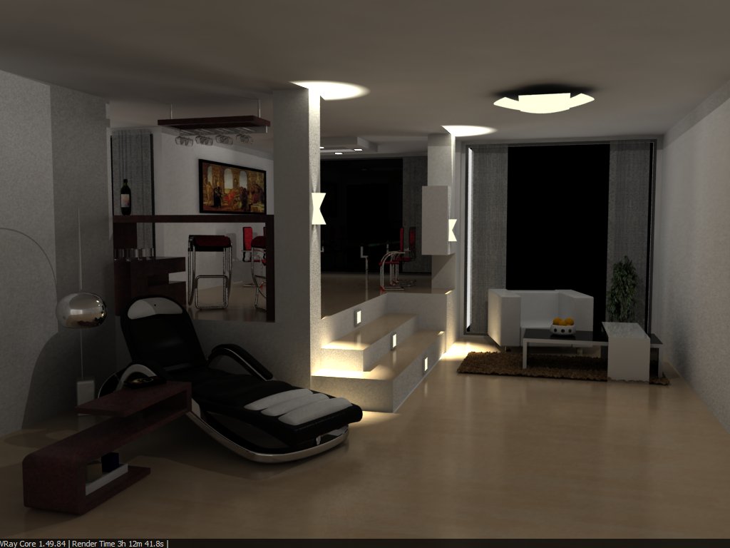 Esta sala es mi tercer interior, lo único que me faltó por hacer es poner un fondo, pero decidí dejarlo así por ahora, espero sus críticas para poder mejorar, lo modele en Rhinoceros y renderice con Vray, una pregunta ¿puede ser que el Vray de 3ds tenga mejor calidad que el de Rhino? Saludos.