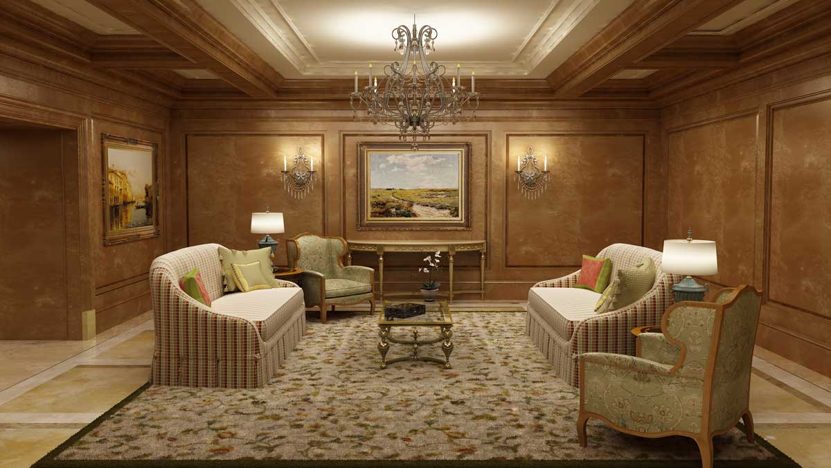 Imagino que te refieres en lo de las maderas a las molduras y esas cosas, pues te diré que fue lo más fácil, todo es con el swep modifier, los perfiles venían dibujados en los planos que me dieron, simplemente importe esas splines y les di el swep, y listo. Lo que dio un arduo trabajo fueron los muebles y adornos, de esos solo había fotografías y dale a modelar. Saludos y gracias por los comentarios.