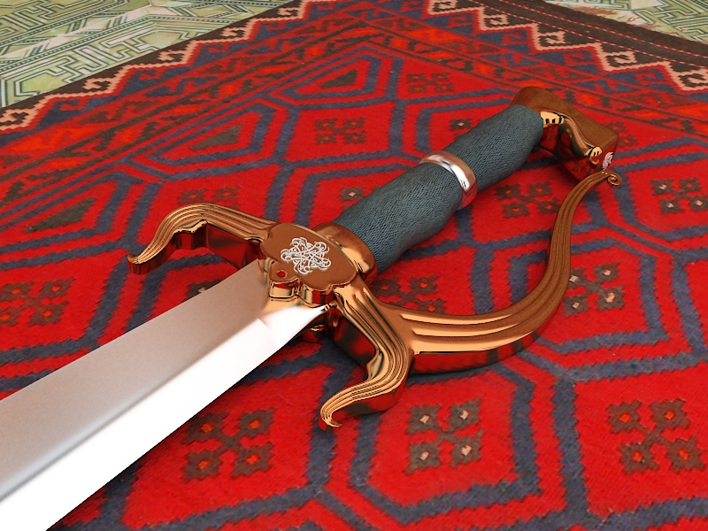 No sé si será una cimitarra porque la verdad no la he copiado de ningún lugar es pura invención, lo único los símbolos y que no sé qué significan los vi me gustaron y los modelé. Saludos.