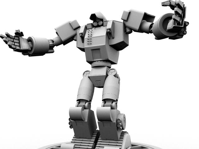 Muy bueno, me gustaría verlo con las texturas terminado. Y el robot, tiene armas, como cañones o lanza cohetes? Sería interesante verlo en una postura de tiro, como los Varitech de Robotech, con un fogonazo saliendo del cañón. Saludos.