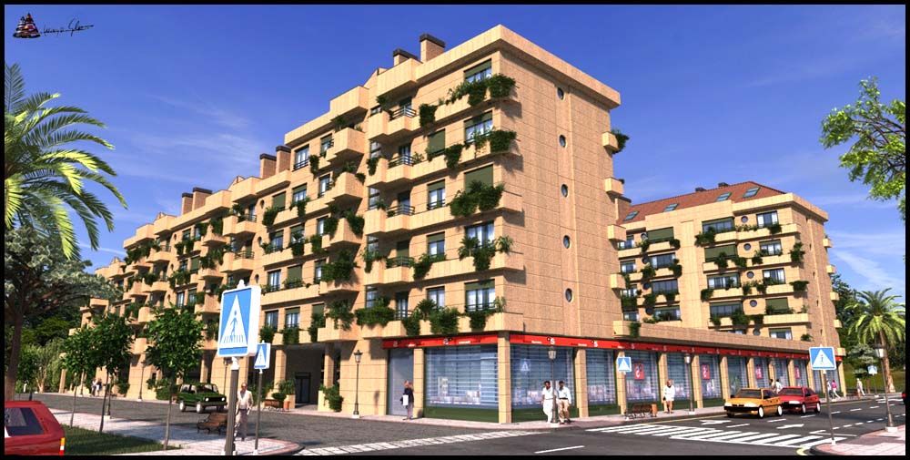 Tomo nota de lo que comentáis sobre la iluminación. La verdad es que, si tiene GI, pero el cliente quiere que tenga un pinta muy soleada, o sea con mucho contraste, lo que hace que apenas se note el efecto. De todas formas, las imágenes finales que están ahora renderizando, están más equilibradas. Otras cosa que le quita realismo es el material de la fachada, originalmente no era así y quedaba más bonito, pero se metieron el arquitecto y el promotor en mí oficina y el resultado fue este.