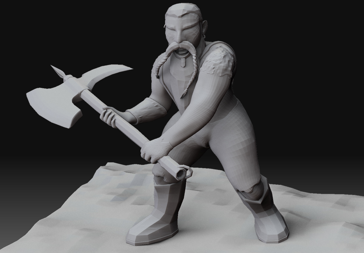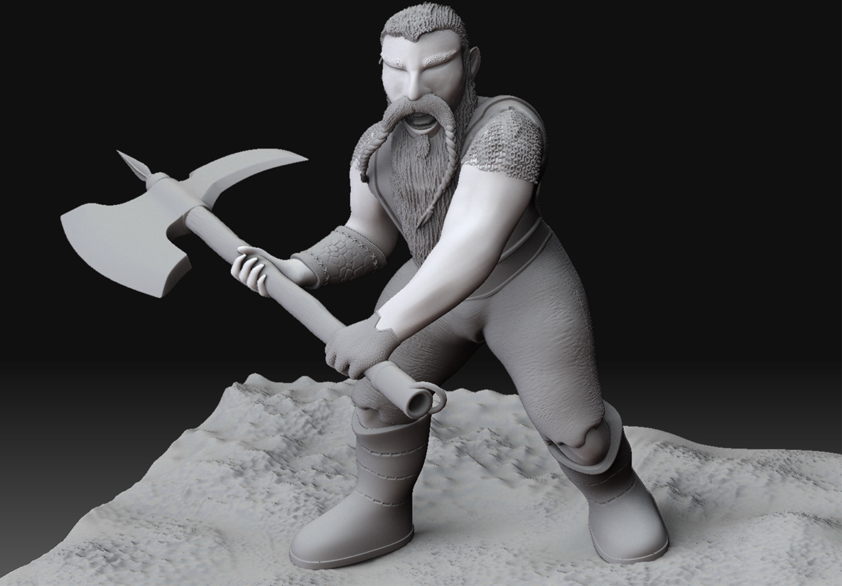Bueno, tras haber aprendido algo de ZBrush, y casi haberlo olvidado, ayer me puse a hacer una guerrero enano en 3d, por modelado tradicional y me he dicho, que carajos, en ZBrush. En modelado tradicional solo hice el cuerpo y la hoja del hacha, luego a ZBrush. No estoy orgulloso, pero comparando con la caca. Que me salía antes mientras aprendía ZBrush y tras miles de atascos, bueno.