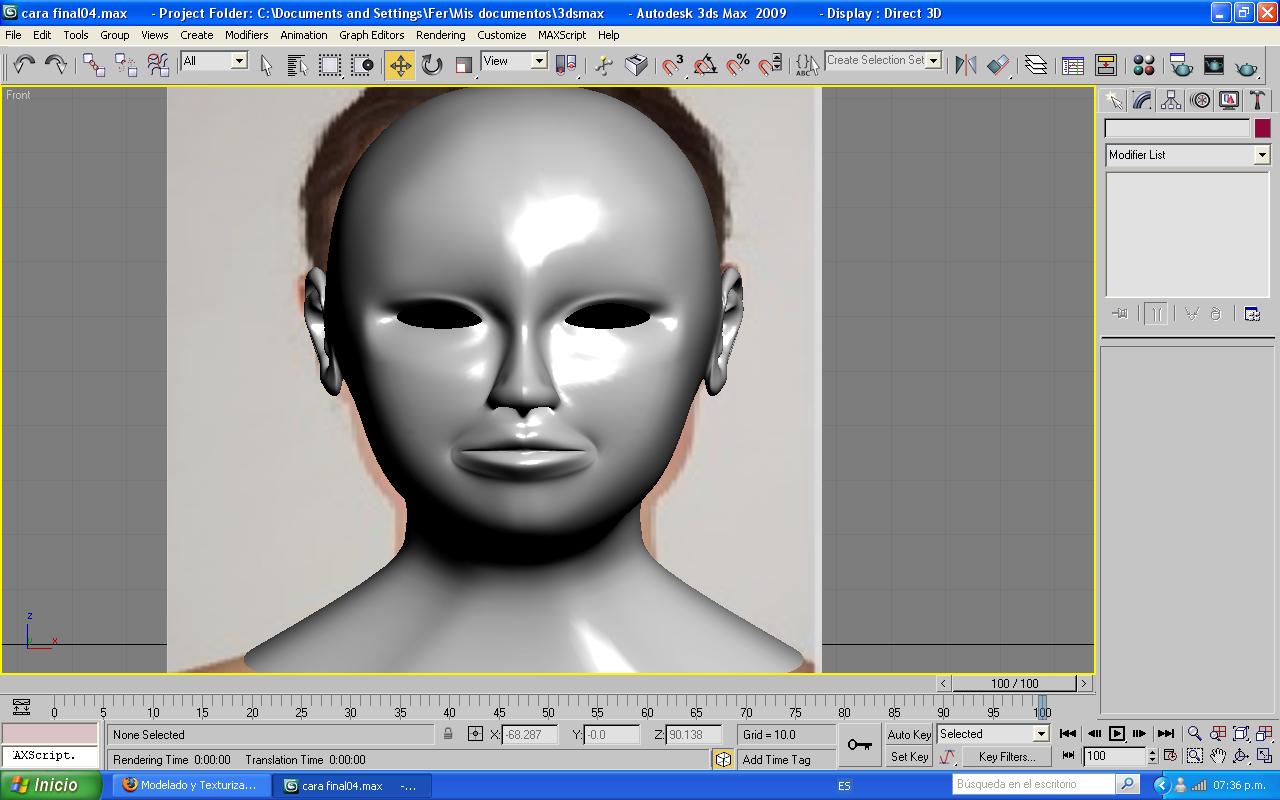 En mi caso he comenzado no hace mucho con el 3d y ya estoy en modelado orgánico, el detalle es que el cuerpo me queda creo yo hasta el momento decentemente bien, pero mi gran problema es con el rostro y la cabeza, llevo cerca de 4 días seguidos trabajando en el rostro de un personaje y por más que veo tutoriales, ya he visto el de Juana de Arco y varios más, lo más comunes vaya que hay por la web y creo que de verdad soy bastante malo en esto puesto que mi modelado más bien parece un alien o cualquier otra cosa menos el rostro que busco modelar, aquí pongo la fotografía de mi último trabajo, si alguien pudiese ayudarme en decirme que estoy haciendo mal se de verdad se lo agradecería, ya me estoy desesperando un poco.