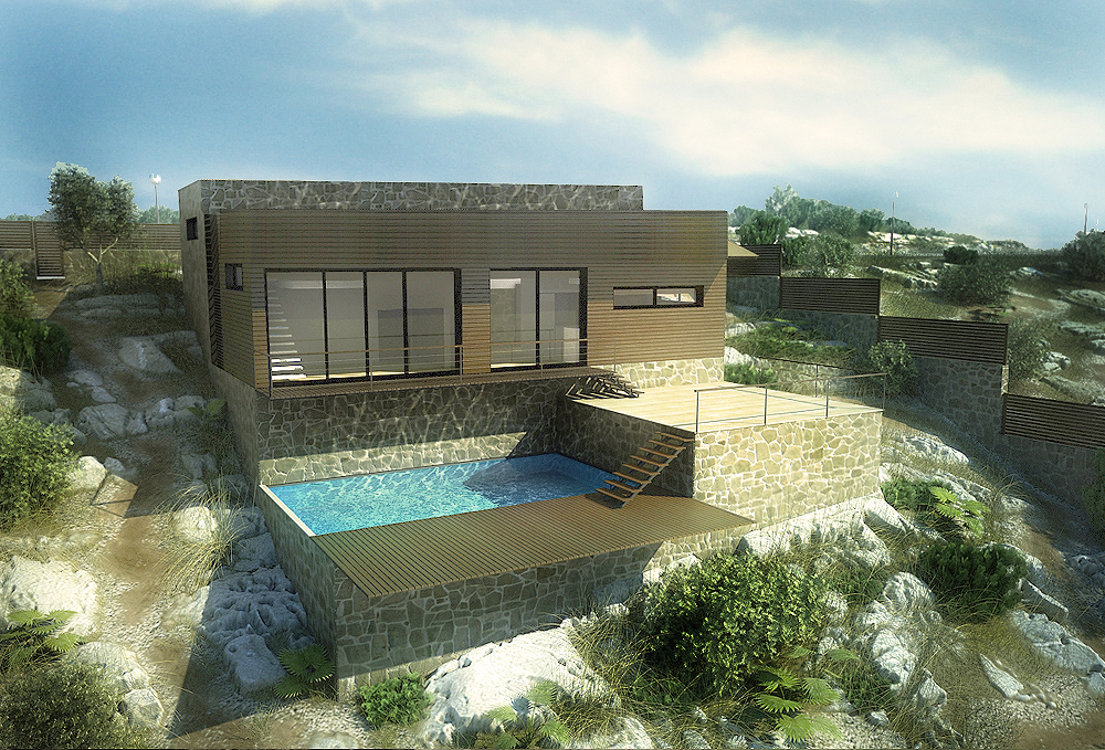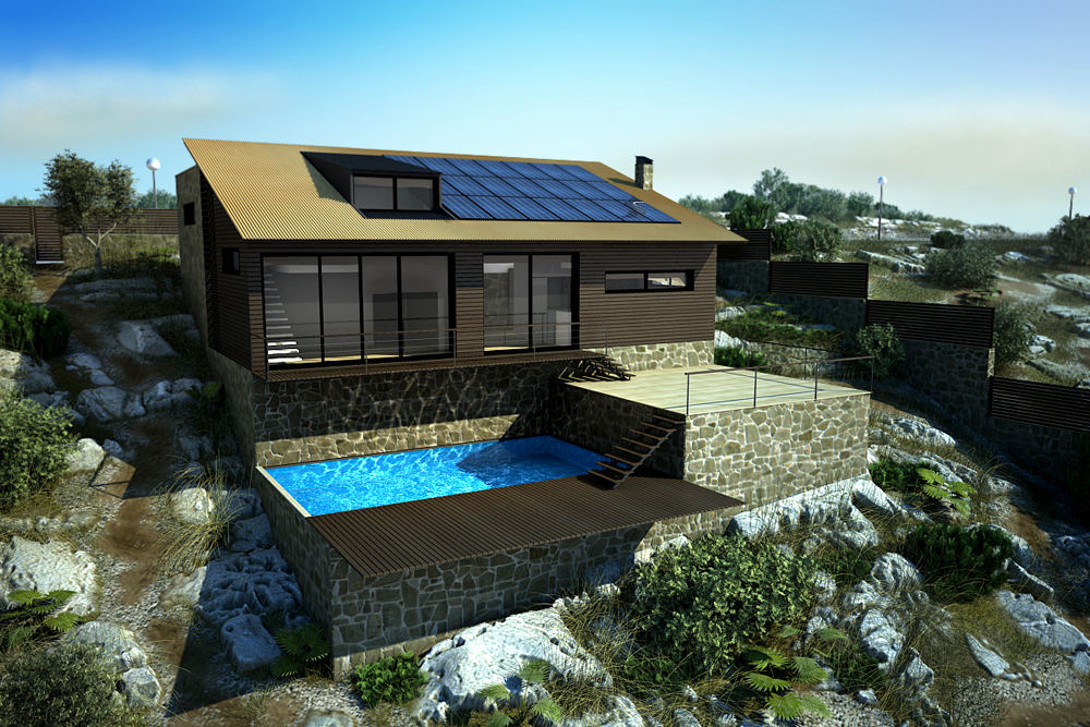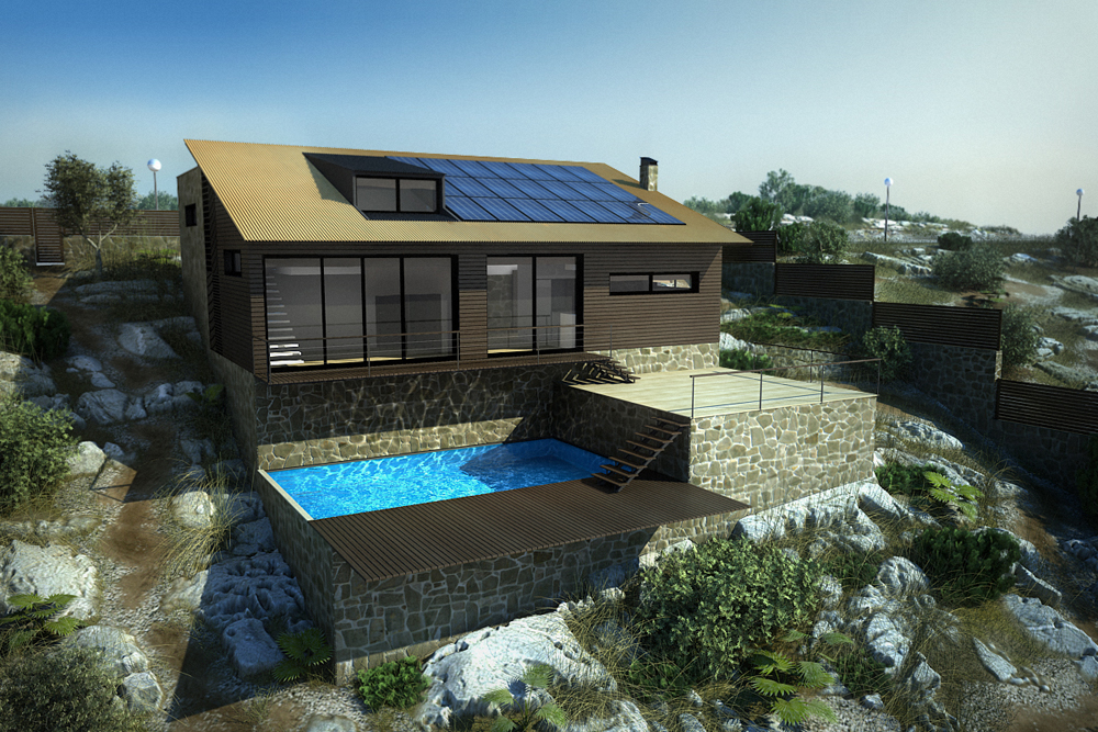 Epa que excelente trabajo Gspower, solo te quiero hacer algunas sugerencias y espero que no te moleste, creo que las sombras están duras, al cielo le hace falta unas nubes como para tratar de darle más vida, la madera también ganaría más si fuese de un color más claro, bueno y por último también te hago una sugerencia en el diseño para ver cómo quedaría sin la cubierta inclinada, tratando de darle un toque más minimalista.