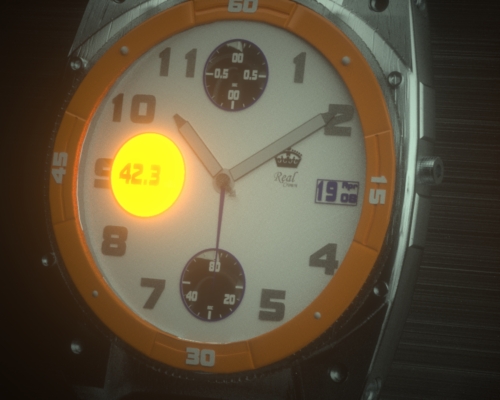 Hola compañeros, hacía tiempo que no hacía nada en 3d por temas de trabajo. He realizado este reloj con 3ds Max y Fryrender, ya que hacía un cantidad que no lo tocaba (Fryrender), es un modelo modificado de una fotografía de internet, la verdad no se parece mucho, pero me sirvió de guía para los pequeños detalles como hendiduras de los anclajes y tal.