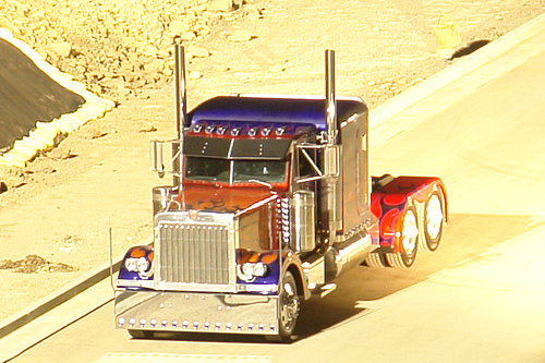 Tienes algún plano rojo enfrente del camión? Es que se ve reflejado en la chapa del guardabarros.