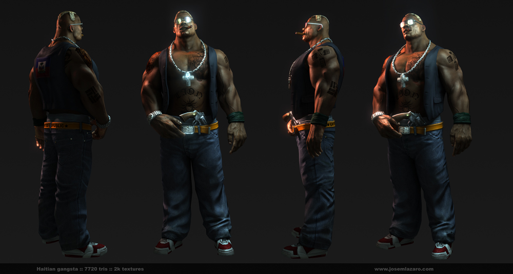 Aquí tenéis a mi último personaje. Es una especie de chico malo, experto en vodoo y cantante de rap haitiano francés. El estilo es algo peculiar buscaba un estilo realista cartoon, medio cómic.