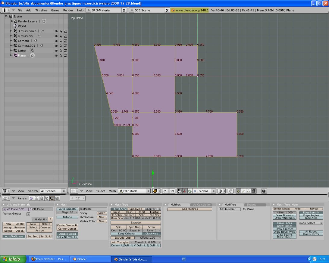 Probando cosas he insertado un plano, lo he extruido a la dimension del anterior, los he juntado y los he separado y ahora salen bien las distancias de las aristas.