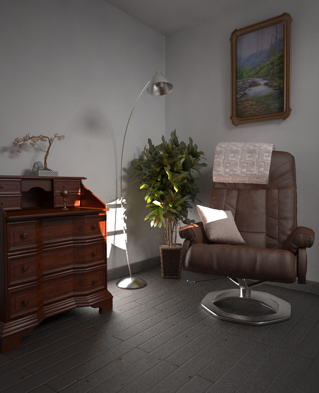 Ahí va un rincón de Vray, fruto del aburrimiento, que hoy no hay trabajo. Espero que os guste, aunque no tiene mucha cosa, subiré actualizaciones, que sigo con el todavía. Esta poco soso. Un saludo.