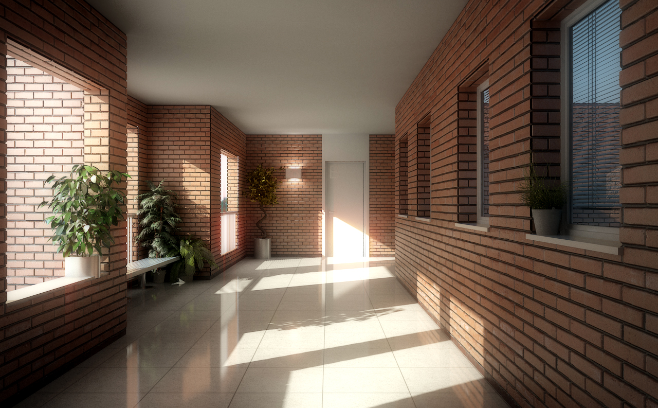 Hola, me gusta cómo ha quedado la imagen. La maceta de la izquierda esta atravesando el plano de la ventana? La verdad que con tanto ladrillo parece el típico pasillo de un colegio. Enhorabuena por el trabajo. Un saludo.