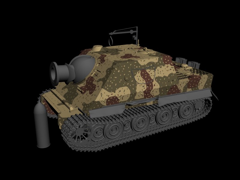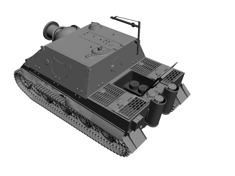 Un poco de historia: Sturmtiger o Sturmpanzer vi, era un cañón de asalto alemán de la segunda guerra mundial, construido a partir del chasis del Tiger i y armado con un mortero naval, el Sturmmörser RW61 l/5,4 de 380 mm. Su tarea principal era proporcionar apoyo de fuego a las tropas de infantería en los combates urbanos. Sólo se fabricaron 18 unidades, a partir de tanques Tiger dañados.