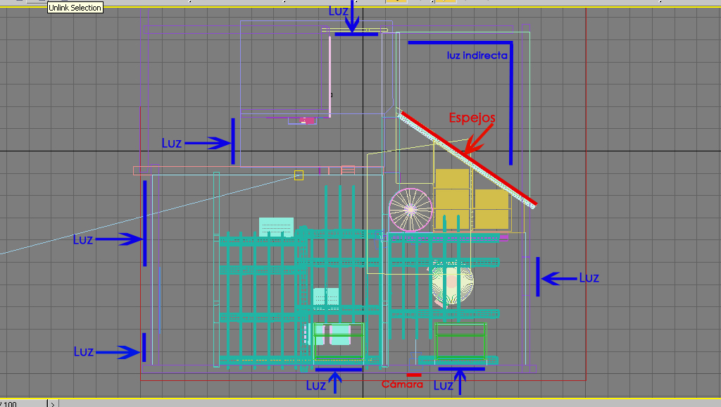 La elección de este diseño para el reto fue la dificultad de cuadrar los espejos con las dimensiones de la estancia, para que todo quedase en su sitio sin tener medidas reales de nada. Es de las cosas que más me ha costado.
