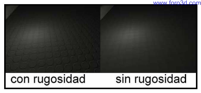 El mapa rugosidad es el encargado de hacer que el material parezca rugoso. Para esa tarea, normalmente hay que asignar una imagen en escala de grises. La imagen en escala de grises indica al material donde recibir más luz y donde menos.