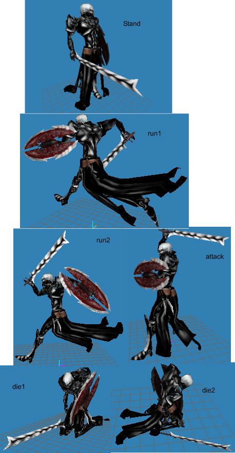 Listo ya subí el modelo, está listo para que lo descarguen, está en formato an8 de Anim8or, también en formato obj y ms3d de Milkshape con el esqueleto armado y listo para darle más animaciones que las que ya tiene.