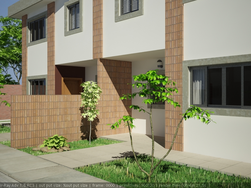 Tiene solo normal Vray Sun&Vray Sky, Physical Camera Light Caché con 1000 subdivisiones, y en el Color Mapping exponential, los demás valores por defecto.