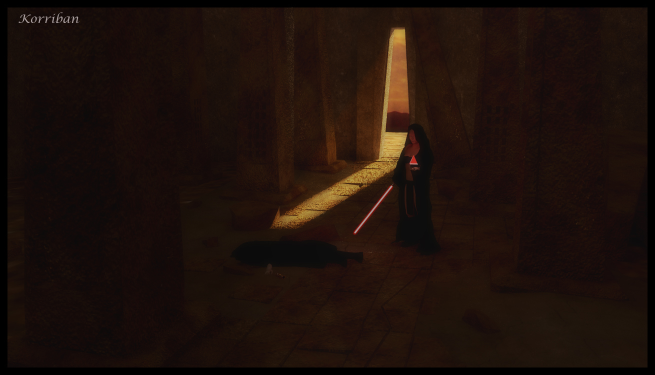 Esta ambientado en el planeta Korriban, el aprendiz ha matado a su maestro quitándole su holocrón Sith.