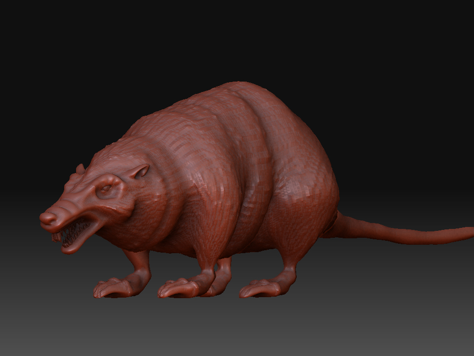 Gegege has avanzado mucho veo que le diste duro con el modelado, al final se ve más un animal mutante, acaba de decidir, que más quieres aflorar de animal? Yo por lo visto me parece que aún tiene el cuerpo de una rata por lo ovalado según la vista de arriba y de perfil, aún no sé que quieres lograr si un 50 y 50 o aflorara más una parte que otra, ya que, al principio la presentaste como rata, pero el hilo va modificándose y al idea va cambiando, a mi parecer me gusta cómo viene el modelo, por ahí le pondría más énfasis en algunos detalles como crítica constructiva; (le mejoraría más la que respecta a la cabeza es decir que se diferencie un poco más la misma del cuerpo del animal, las orejas si es mitad lobo deberían ser un poco más grandes o quizá más llamativas, ge sino pareciera que fuesen orejas de hámster, las patas y garras buen se ve una mezcla de postura de rata y garras de lobo es decir donde apoya las patas parece más rata, pero las garras que tiene quizá denota más a lobo), buen espero sirva es solo una crítica el resto en general va tomando buena forma dale duro y ánimo.