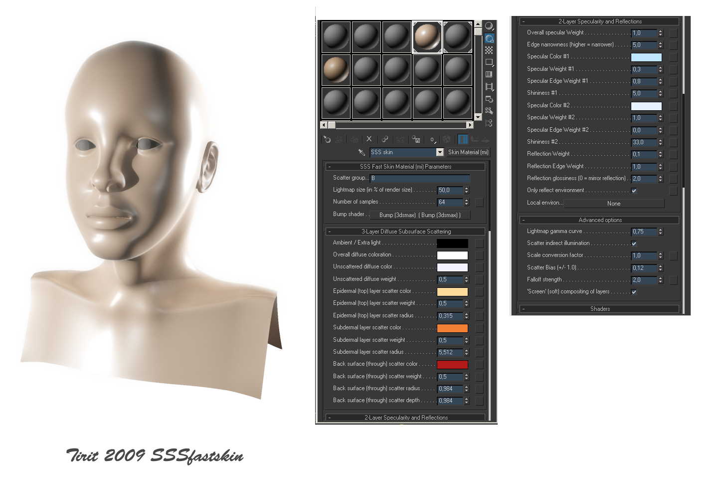 Aquí dejo una prueba con el ss fast skin material, en la imagen esta por defecto sin tocar ningún valor. Una duda de Mental con esta textura, para sacar el render tengo que desactivar el exposure control del Mental Ray, si lo dejo activo me sale totalmente negro, hay algún modo para que me salga el material bien con el Mental Ray photographic exposure control activado?