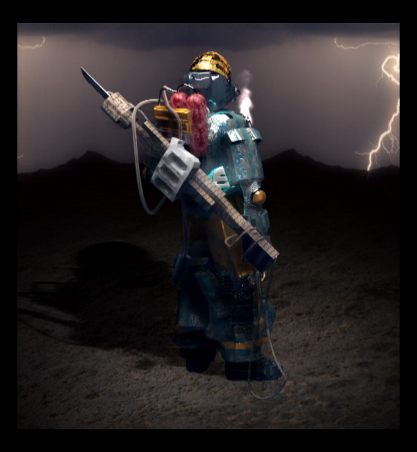 A mí me ha gustado mucho sobre todo la manera en la que has presentado el turntable del personaje. Puedes contar un poco de cómo has echo el fondo con los truenos?