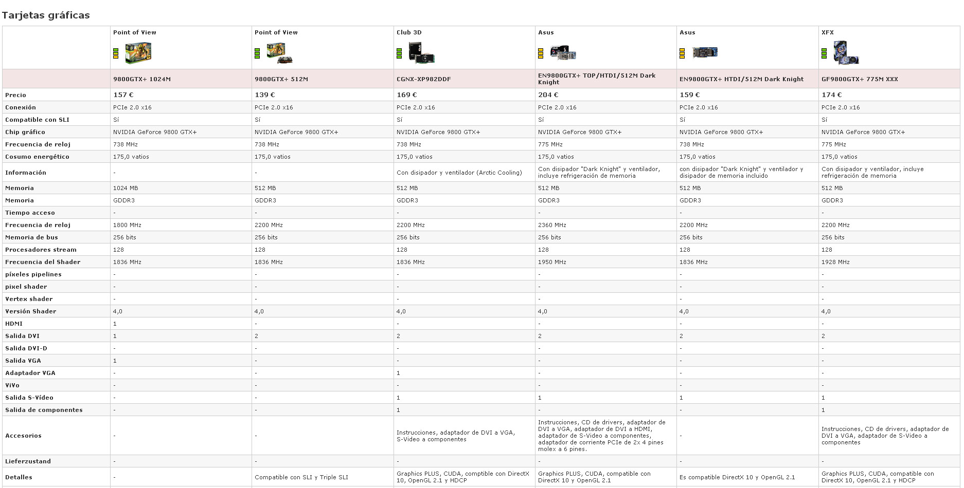 No me gustaría sobrepasar los 150EUR, y tengo clarísimo que quiero Nvidia, ahora sí, he visto por este precio que la mejor opción es la GeForce 9800 GTX, no sé si habrá alguna alternativa o con esta gráfica notaré la diferencia de mi 7900 GT, que era buena hasta que le metí los 2 monitores y el 3ds Max 2009.