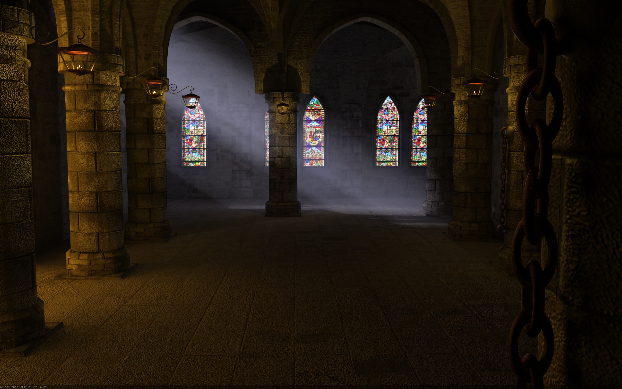 Así que, me parecería bien que desenfocaras la colomna que está cerca de la cámara con su cadena.
