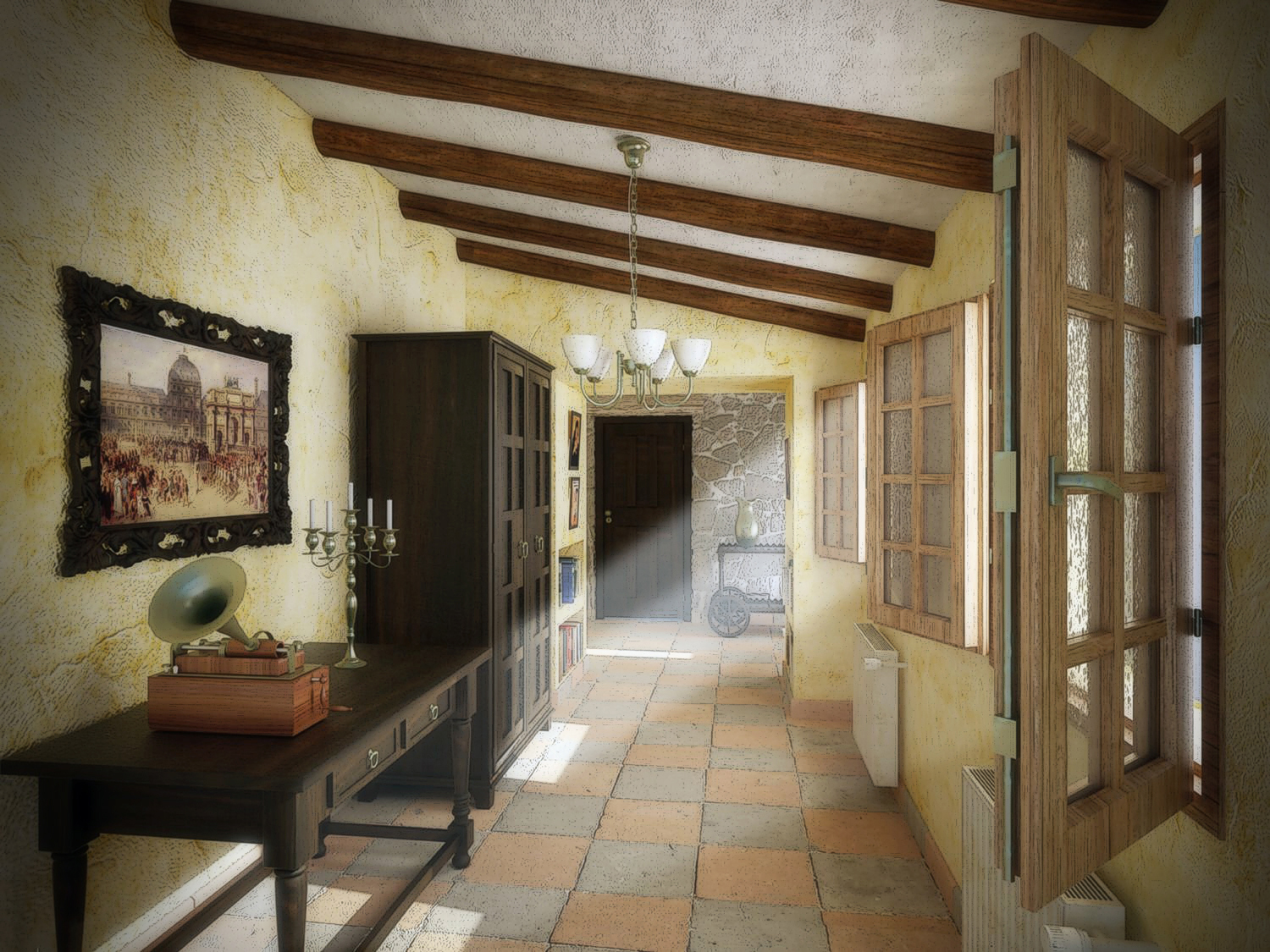 Hola a todos, aquí os muestro un pequeño proyecto que consta de 2 o tres vistas sobre la casa de la abuela de un compañero, de momento el trabajo constara de 2 imágenes una interior y otra exterior que publicaré en breve. Espero que me deis vuestra bendición, consejos y tal.