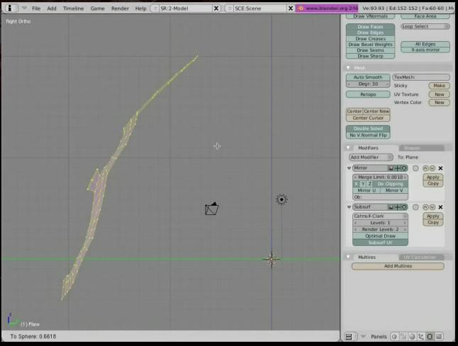 Yo sigo con mis dudas con Blender, pero ya he resuleto bastantes y de momento solo me queda esta. En un video tutorial, dibujan sobre el plano yx. Después pasa al plano zy, con lo que el dibujo pasa a ser una línea. Pues ahora viene lo que no consigo hacer. En el tutorial, lo que hacen es curvar esa línea, con lo que todo el dibujo coge esa curvatura. Seguro que es una tecla que hay que apretar, pero me estoy desquiciando y no encuentro la manera de hacerlo. Muchas gracias.