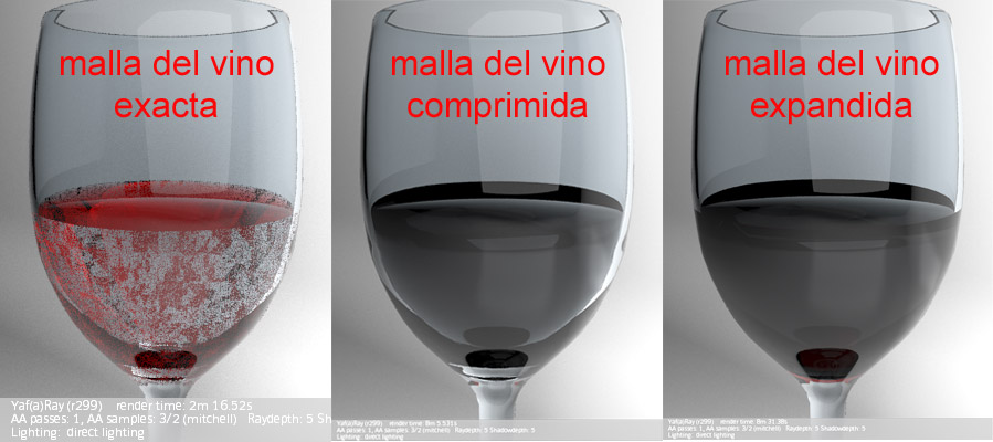Luego escalé muy poco la malla del vino hacia el interior de la copa (de manera que, no se tocasen) y entonces sí que aparecían unas sombras correctas, pero el vino salía de color negro.