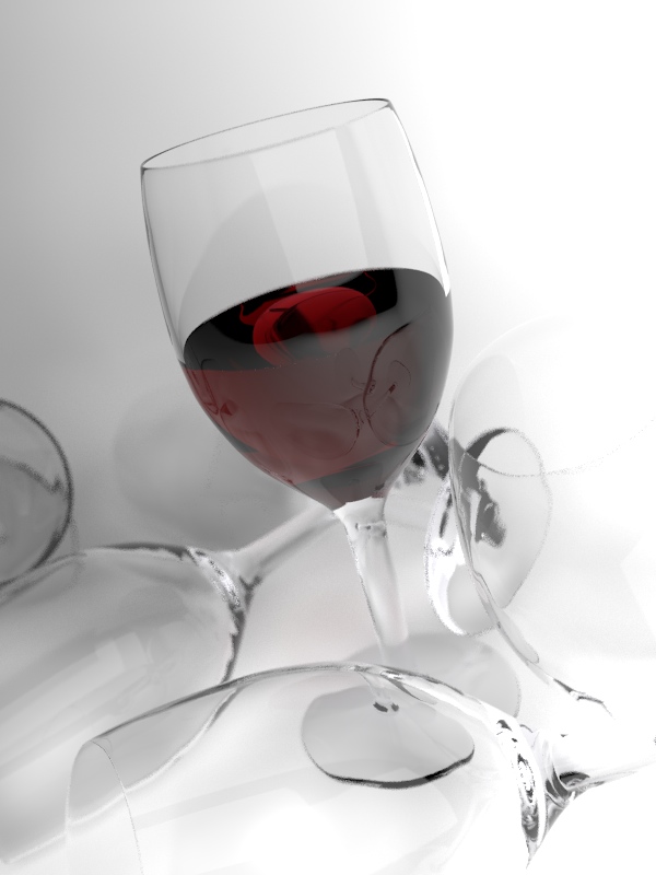 Según lo que dice Caronte (y siguiendo el riguroso sistema científico del cuento de la vieja), el rayo atraviesa 4 copas, por 4 niveles por copa, sale un Ray Depth de 16, lo que hace que el render se tire 5 minutos en la primera línea de renderizado.