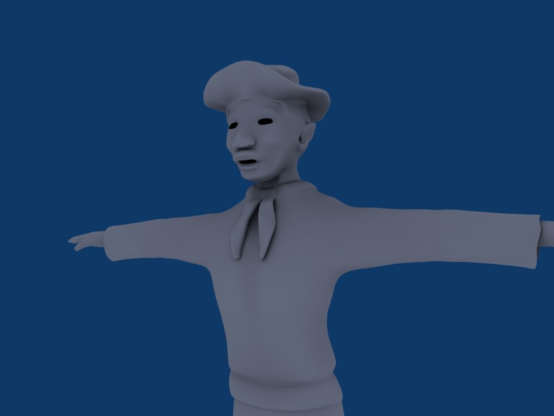 2) va ser medio ton (no sé si vieron los dibujos de Molina campos) y no sé si me convendría hacer una textura o utilizar materiales (por ejemplo, el bigote y el pelo, me convendrá dibujarlo o probar con partículas)?