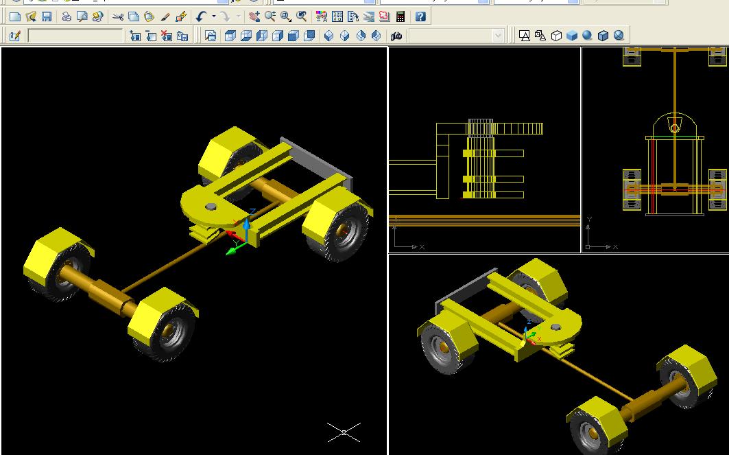 He exportado lo avanzado al 3dsMax 6, para realizar la animación de las ruedas. He dado vuelta el foro y no he encontrado la forma de poder hacer rotarlas en su eje mientras avanza.