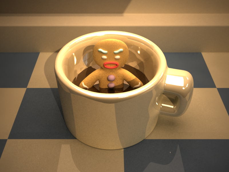 Si tienes razón la taza está hecha en dos minutos y no preste la debida atención a las proporciones del asa. Si, hubiera estado interesante el poner un tono más oscuro a la textura de la galleta que está más próxima al líquido así parecería que esta empapándose, me lo apunto. Gracias por las observaciones.